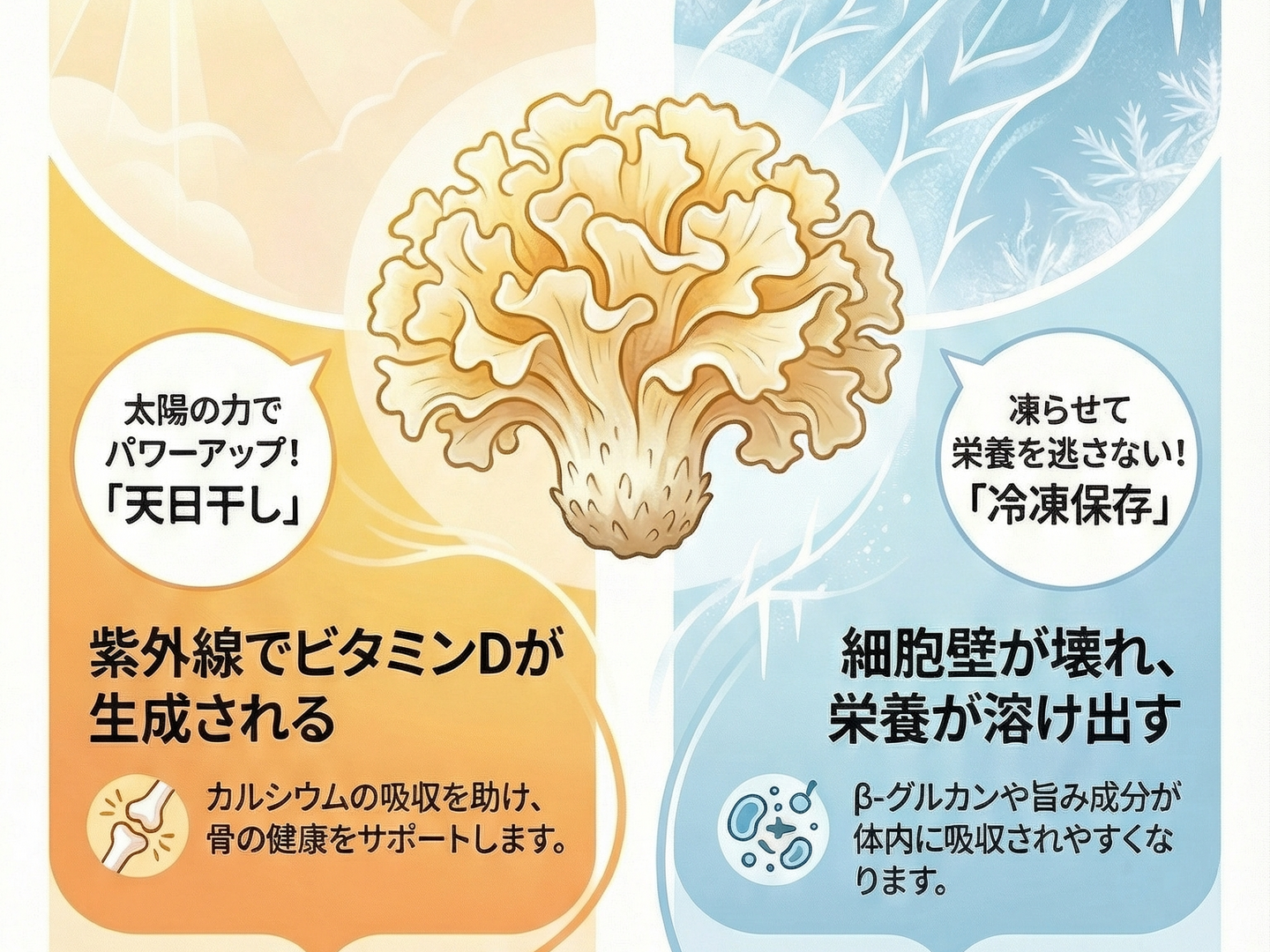 冷凍することで細胞壁が壊れ、旨味成分が溶け出しやすくなると言われています。 凍ったままお鍋やフライパンに入れるだけでOK。 「自家製の冷凍きのこミックス」としてストックしておくと、忙しい日の強い味方になります。