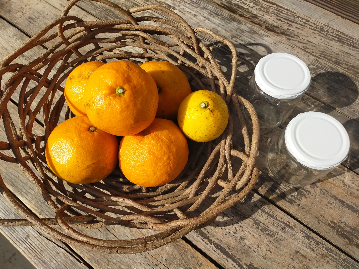 マーマレード作りに必要な、伊予柑とレモン、保存容器付きです。
