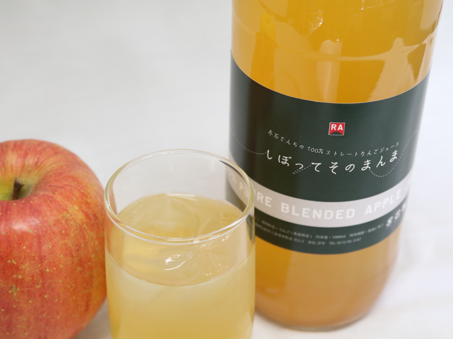 ジュースの原材料はりんごだけ。濃厚かつ後味すっきりとなるように数品種ブレンドして美味しくしています。