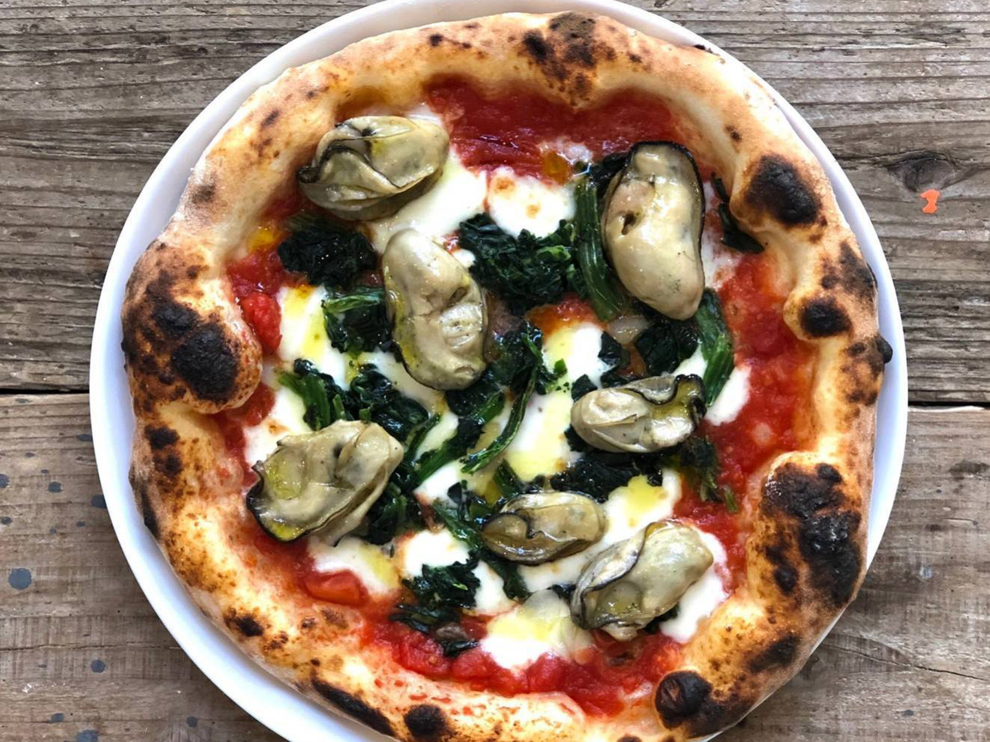 内容 牡蠣のピザ【トマトソース 1枚 & クリームベース 1枚】