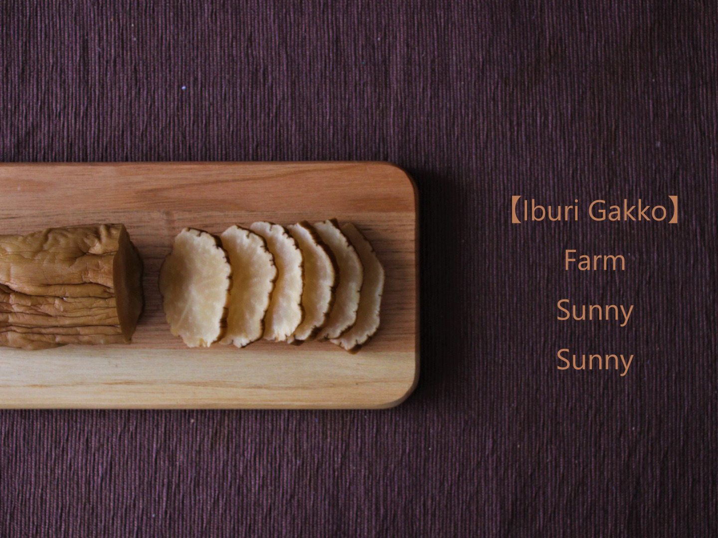 昨年秋の大根は豊作でした。収穫は腰が痛くなってくじけそうでした。栽培する人が減る重量野菜ですが、「俺たちがやらなきゃ誰がやる」という思いで気合を入れ、良い原料を漬け込むことができました。前季までの漬け原料を見直し、厳選した塩と砂糖で、よりおいしくなった当園自慢のいぶりがっこです。