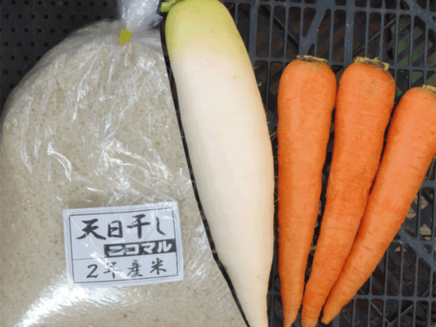 <味>モッチリ、しっとりしたお米3kgと、甘い人参400g、大根450gを是非ともご賞味下さい。