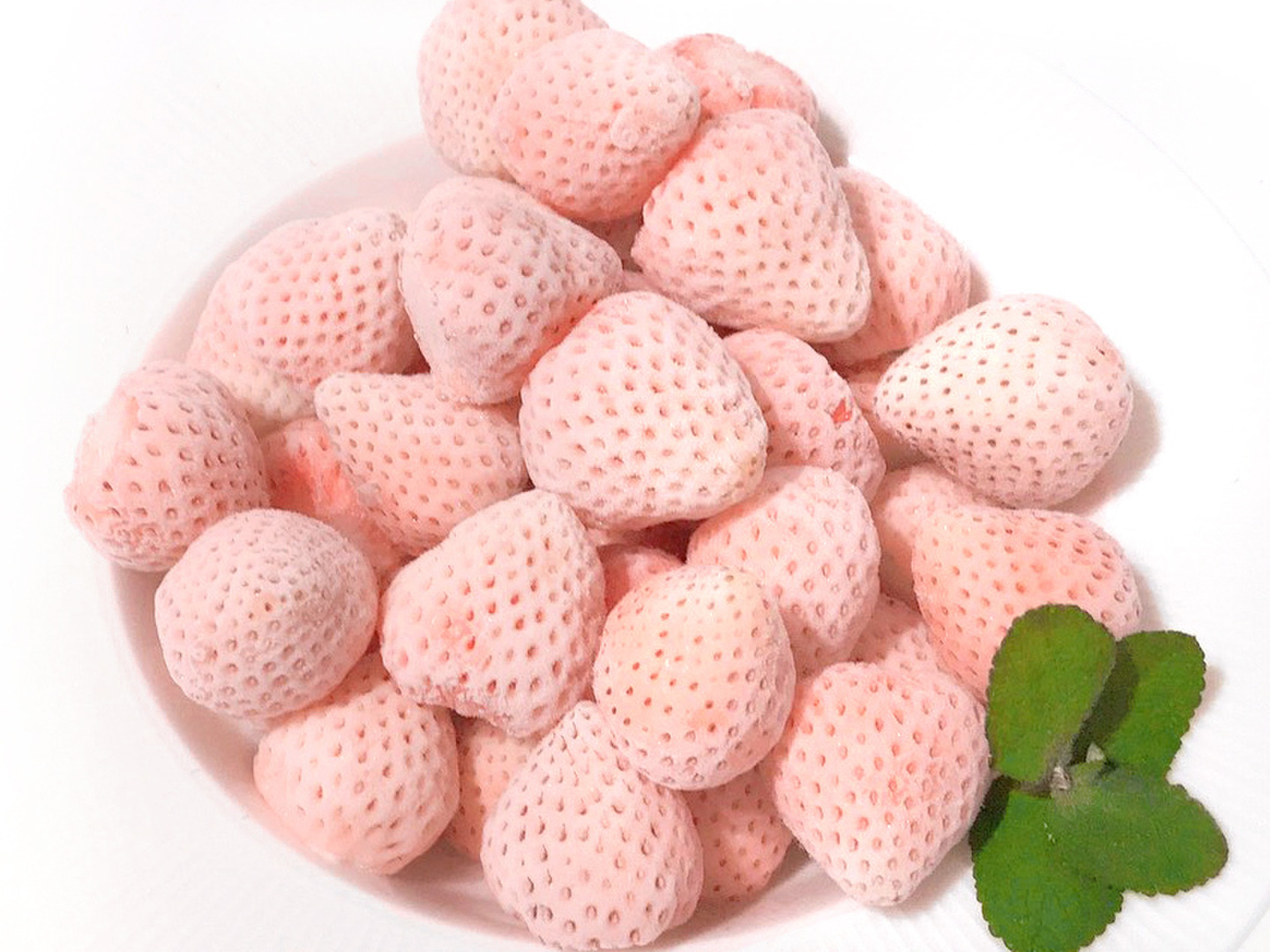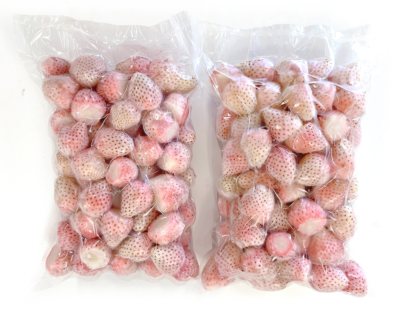 ・生のいちごを真空パック機で真空にする際に圧力がかかり、一部いちごが潰れたり、果汁が出るためシャーベット状になっている部分もあります。