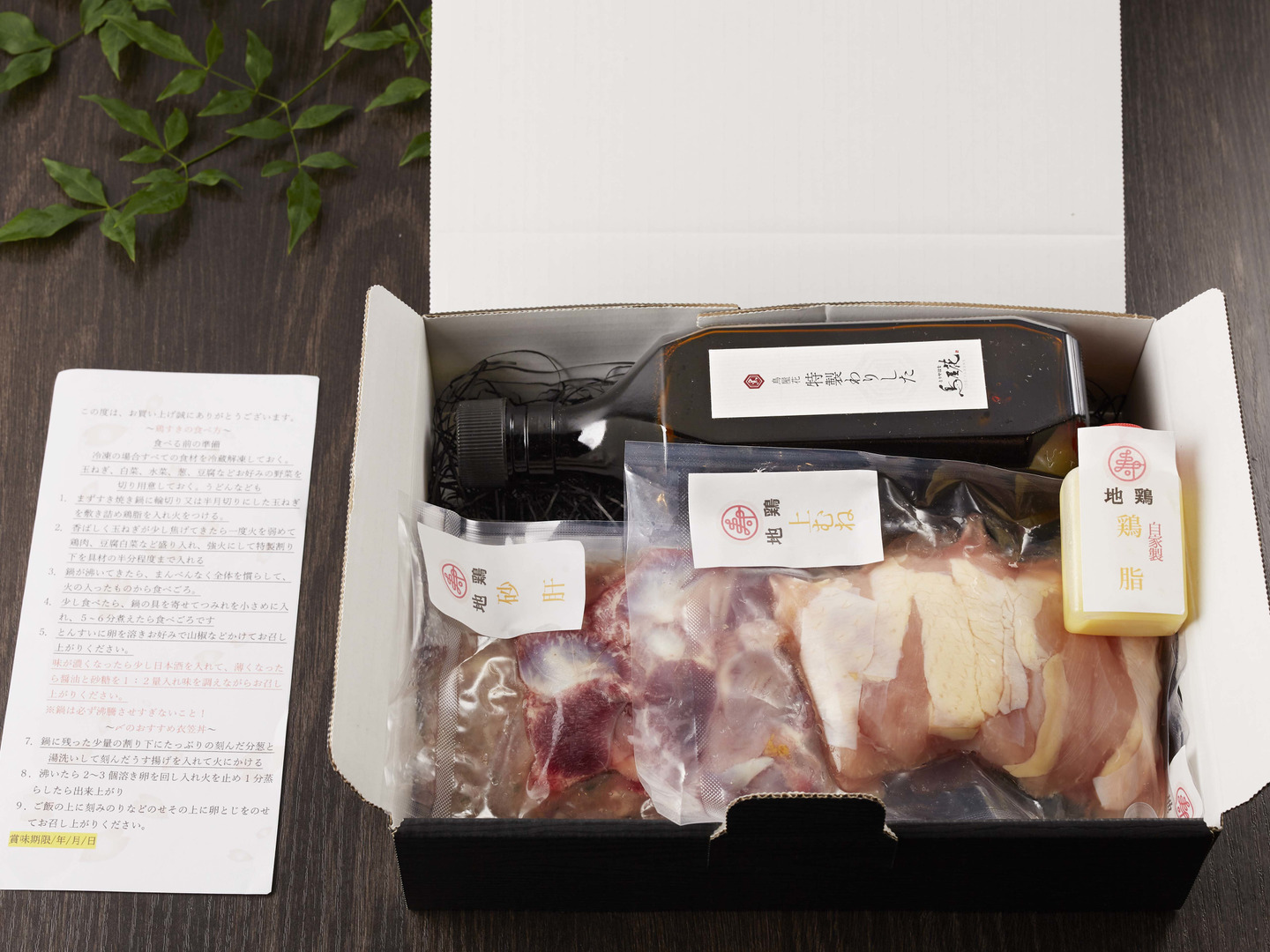 地鶏つくね300g・地鶏もも150g・地鶏むね150g・砂肝100g・地鶏チーユ50g・自家製割り下500ml