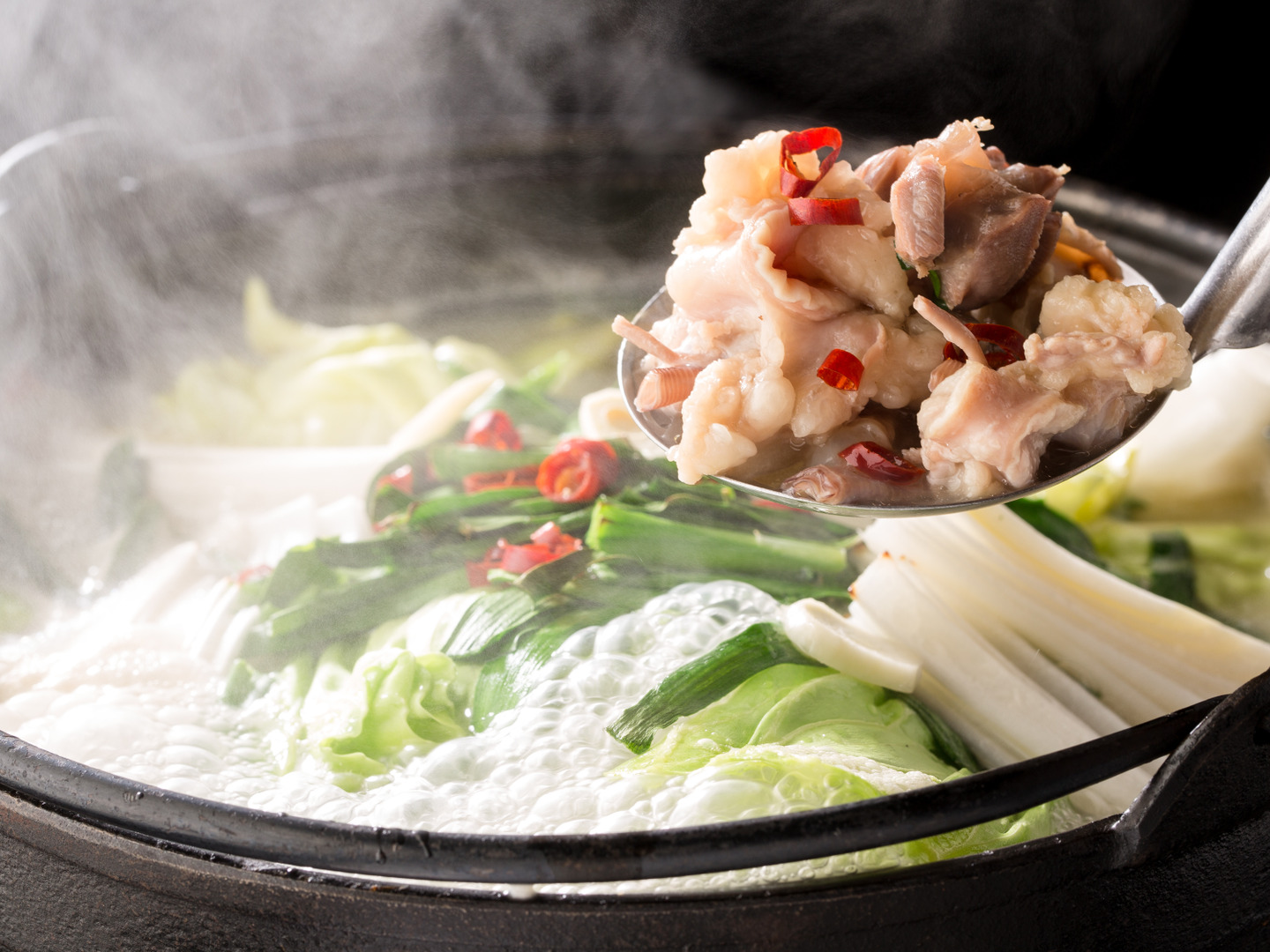 でもつ鍋!!味はもちろん、地鶏特有の癖のない地鶏脂、美容健康にもコラーゲン最適です。お好みの野菜とご一緒に、しめは中華麺がおすすめです。