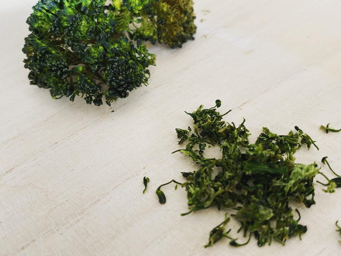 冬の寒暖差により甘みの増したブロッコリーを乾燥工程も防腐剤、薬剤を使用せずに機械乾燥をしております。
