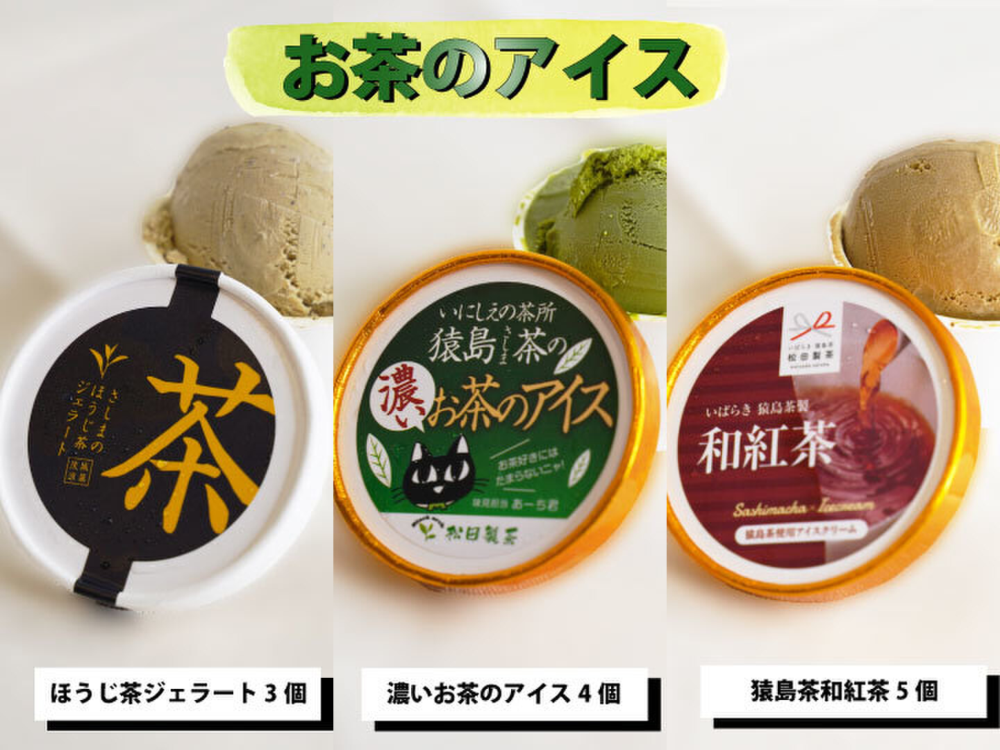 お茶のアイスセット/3種(12個)濃いお茶のアイス4個、ほうじ茶ジェラート4個、猿島茶和紅茶4個 SET-024