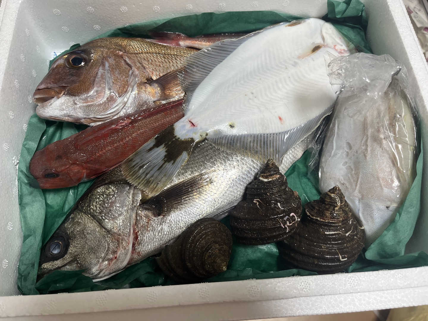 漁師歴40数年の私が厳選したお魚のみ(3〜6種類)をいれます。