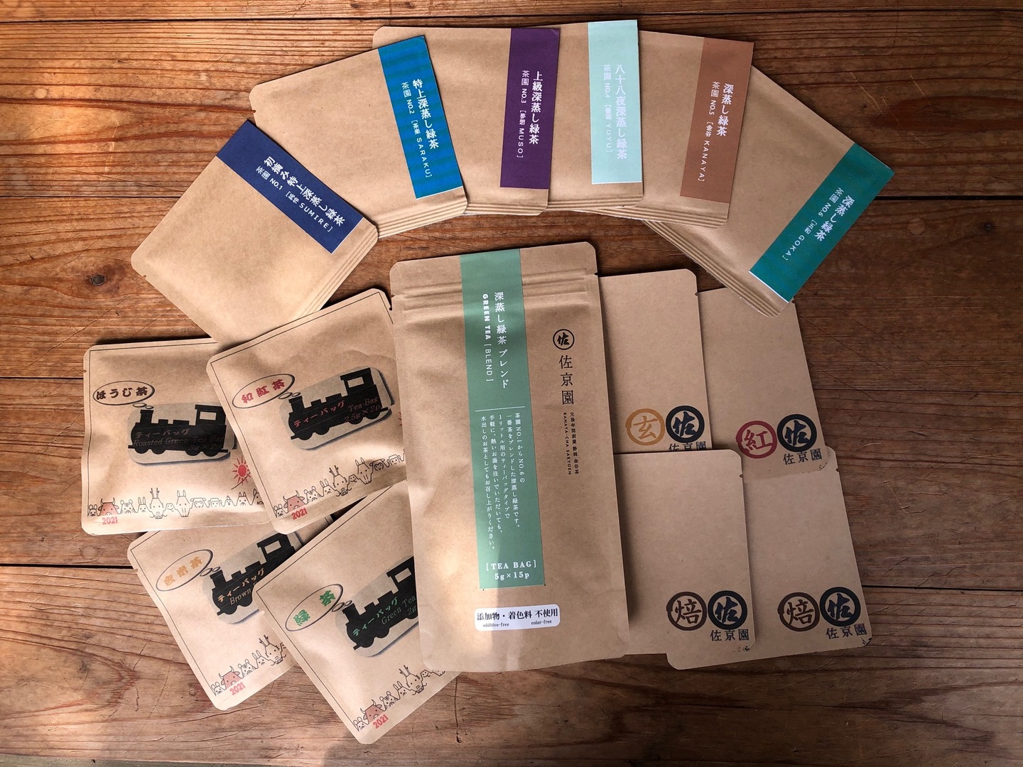 佐京園全部セット『リーフ(緑茶6種、玄米茶、和紅茶、ほうじ茶)、ティーバッグ(緑茶2種、玄米茶、和紅茶、ほうじ茶)』【農カード付】【初回限定BOX】
