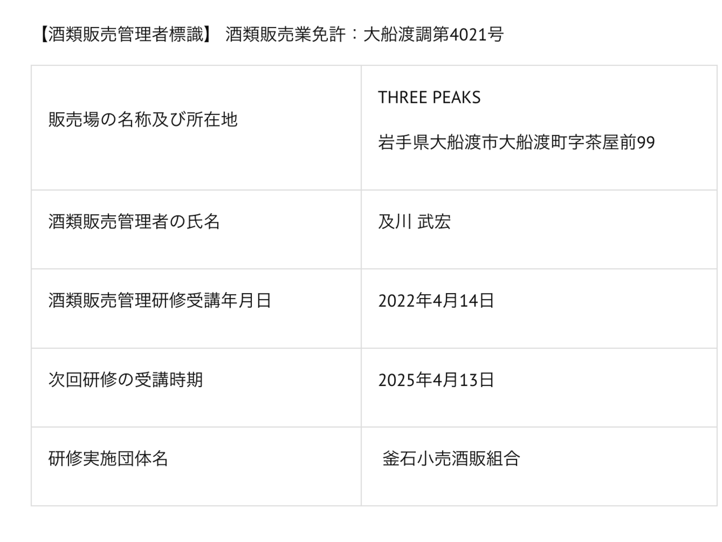 製造者 株式会社スリーピークス
