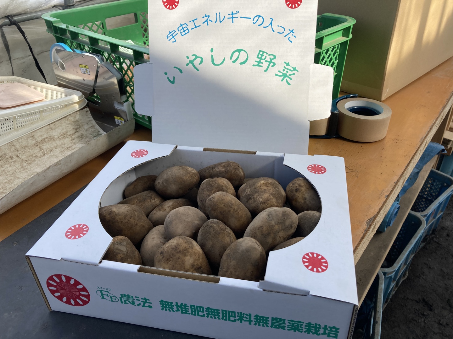 細心の注意を払って選別・箱詰めしておりますが、万が一、芽が出ていたり緑色になっている部分がありましたら、お手数ですが厚めに皮をむいて取り除いて頂ければと思います。
