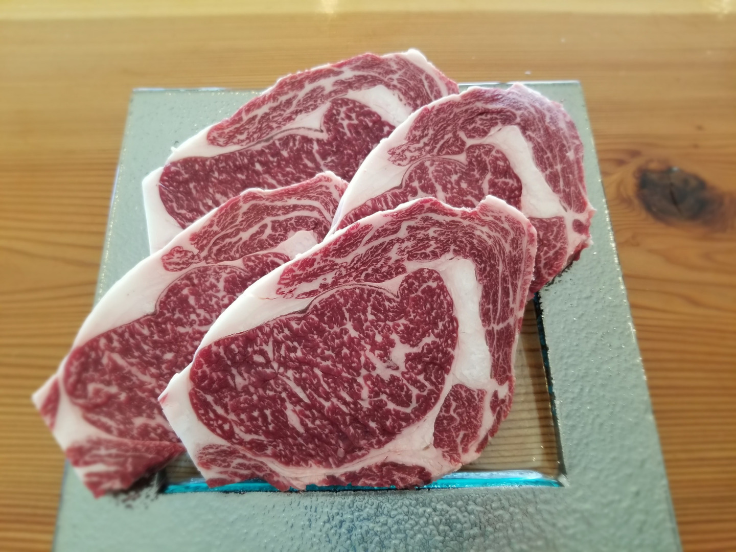 自社牧場で長期肥育した黒毛和牛(経産牛)のロースステーキです。