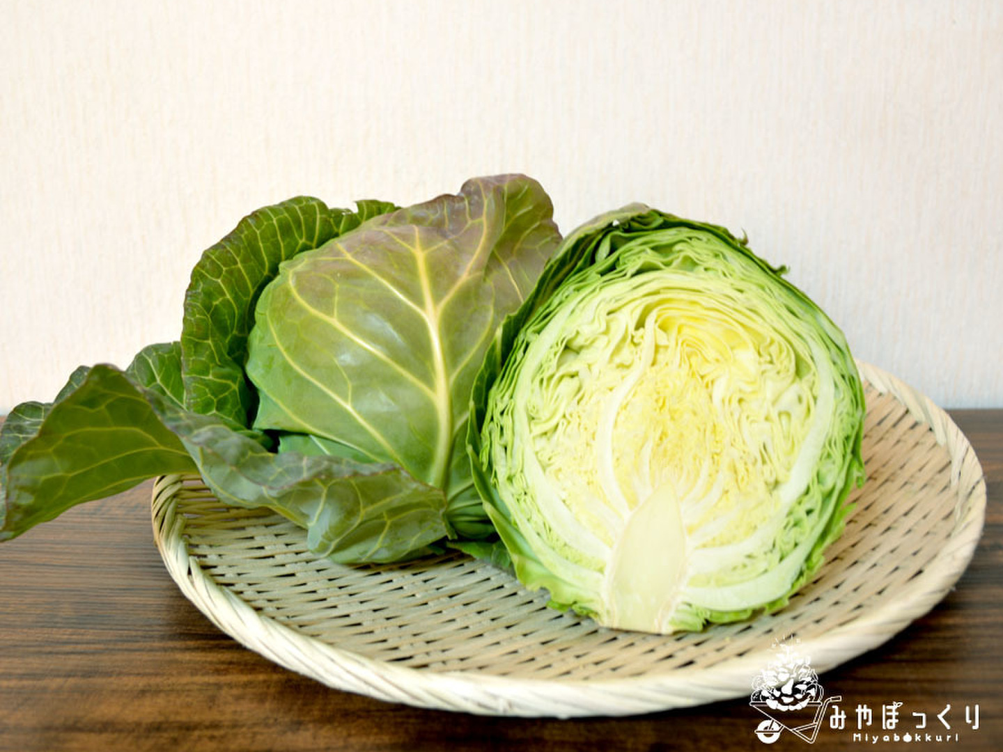 キャベツより少し小さくて丸く(750g~1kg)、薄く柔らかい葉が詰まっています。