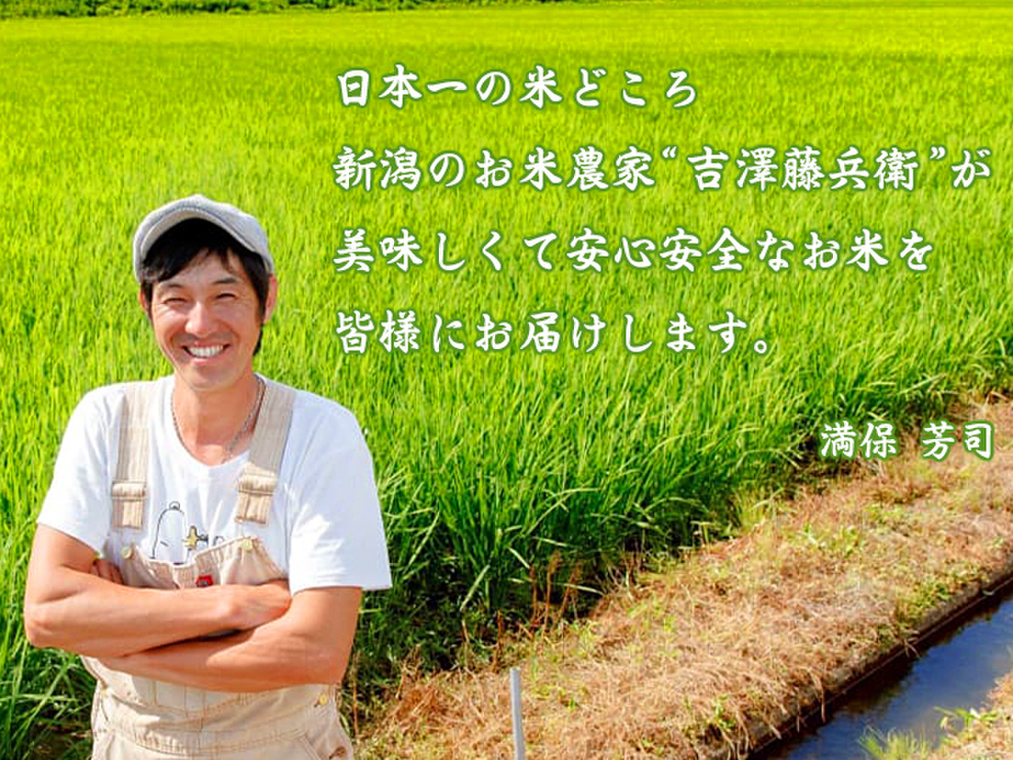 吉澤藤兵衛 新潟県長岡市 14いいね 生産者のこだわり 1 減農薬・減化学肥料栽培 2 「にがり」をまく 3 日本一の米どころ 新潟の美味しいお米をお届け 4 生産者の顔が見える安心安全な特別栽培のお米。