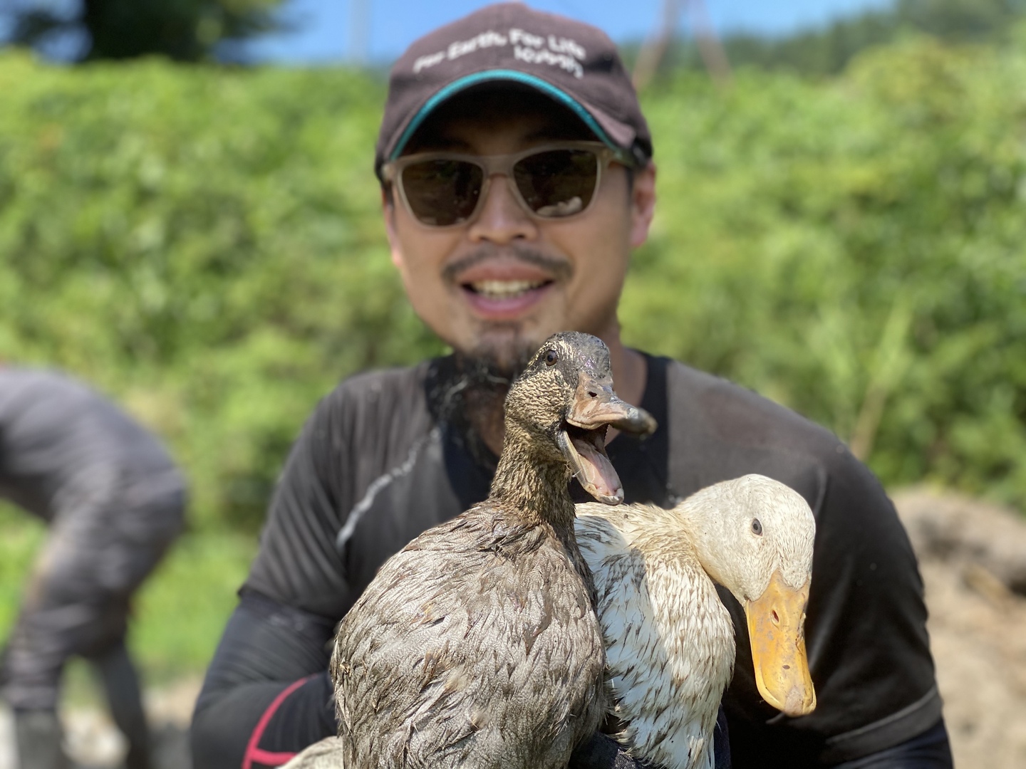 2020年からはあひる合鴨農法に取り組みました。あひると合鴨達が完璧な除草をしてくれて、稲に刺激を与えてくれたおかげで米作りをしている中で過去最高の出来栄えです。