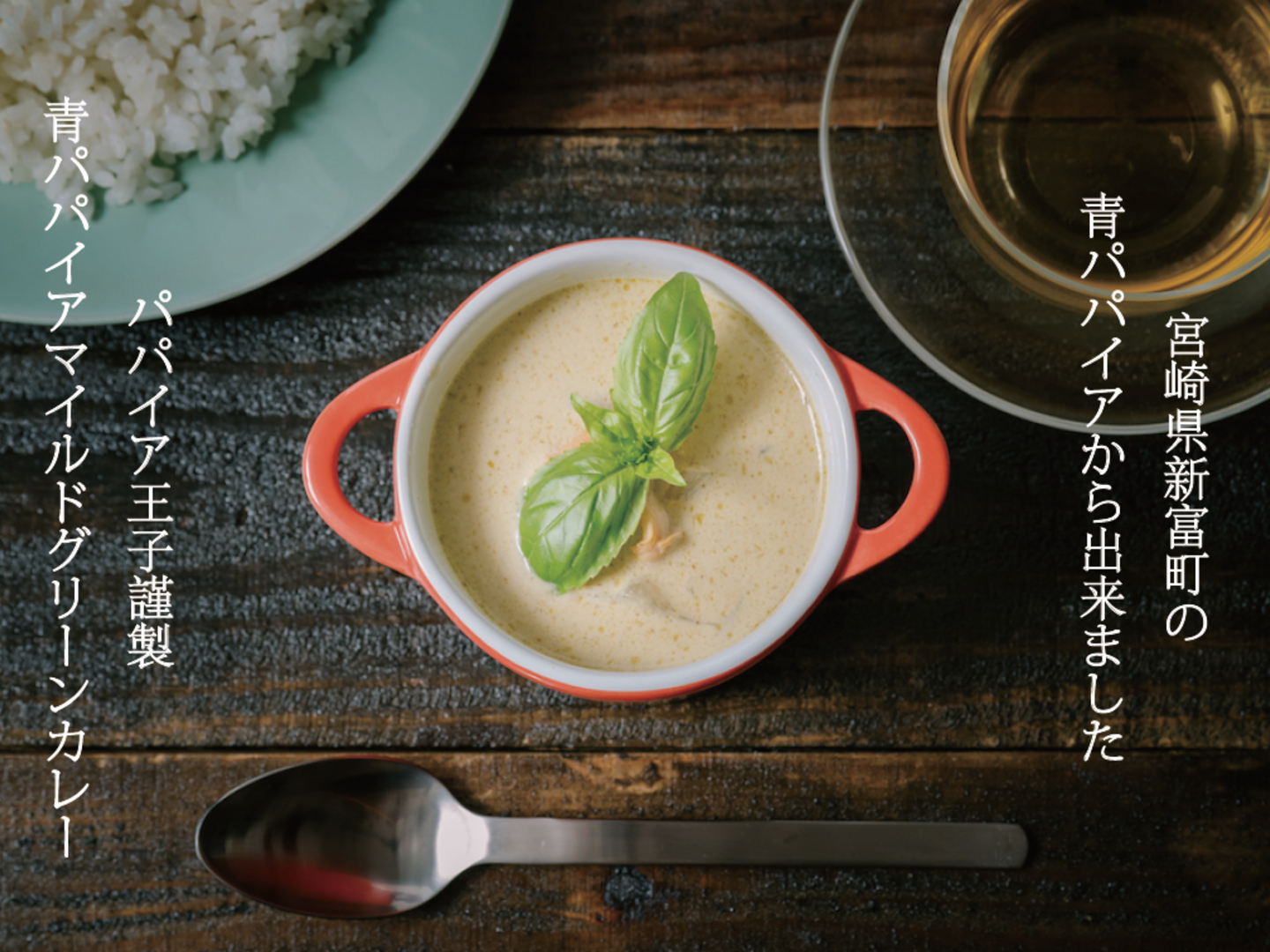 【原材料名】ココナッツミルク(タイ産)、青パパイア(新富町産)、鶏むね肉(宮崎県産)、グリーンカレーペースト、ナンプラー、砂糖(一部にエビ・鶏肉を含む)