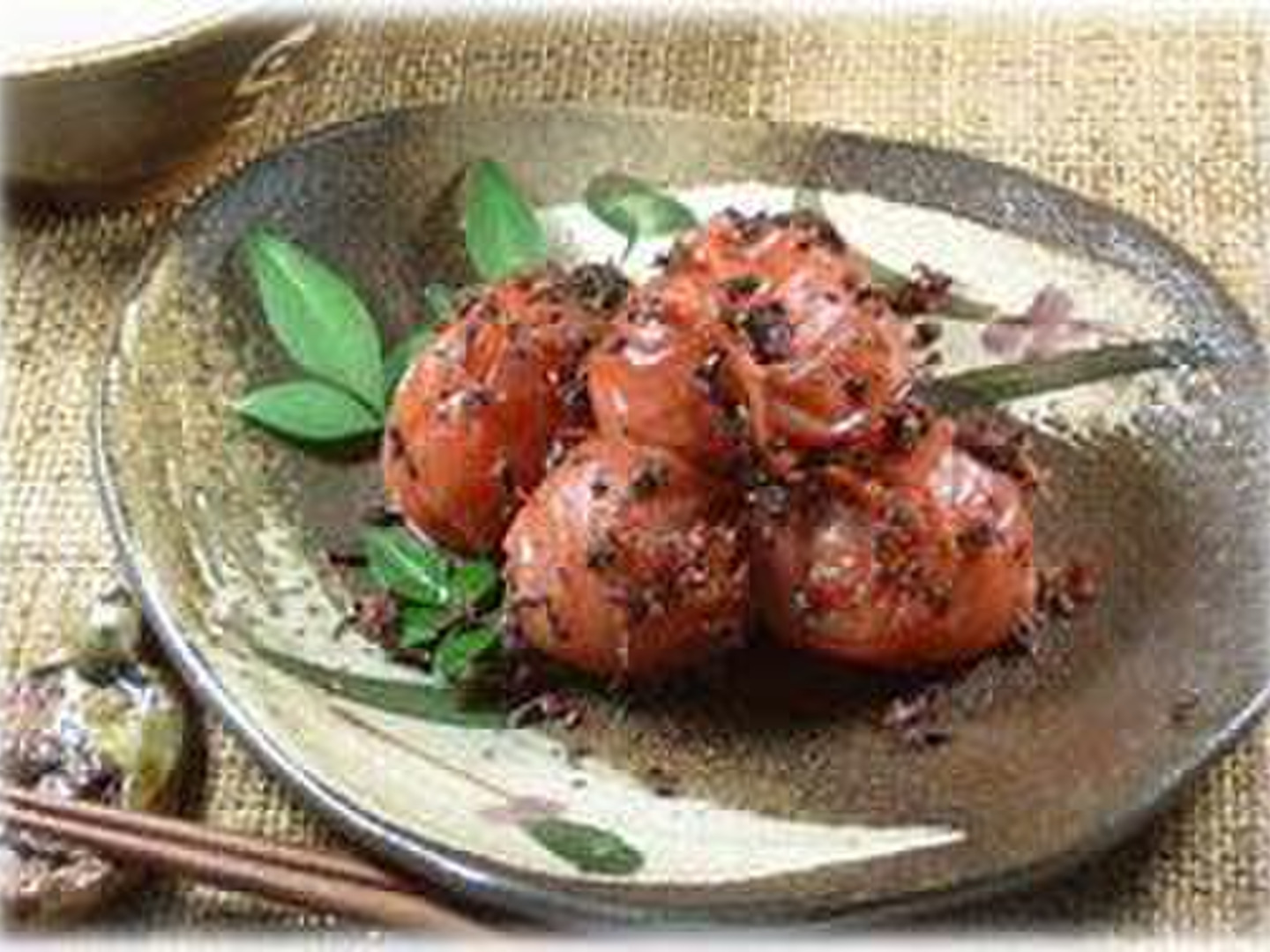 天日干しをした梅を塩分を抜いて、味付けにしております。