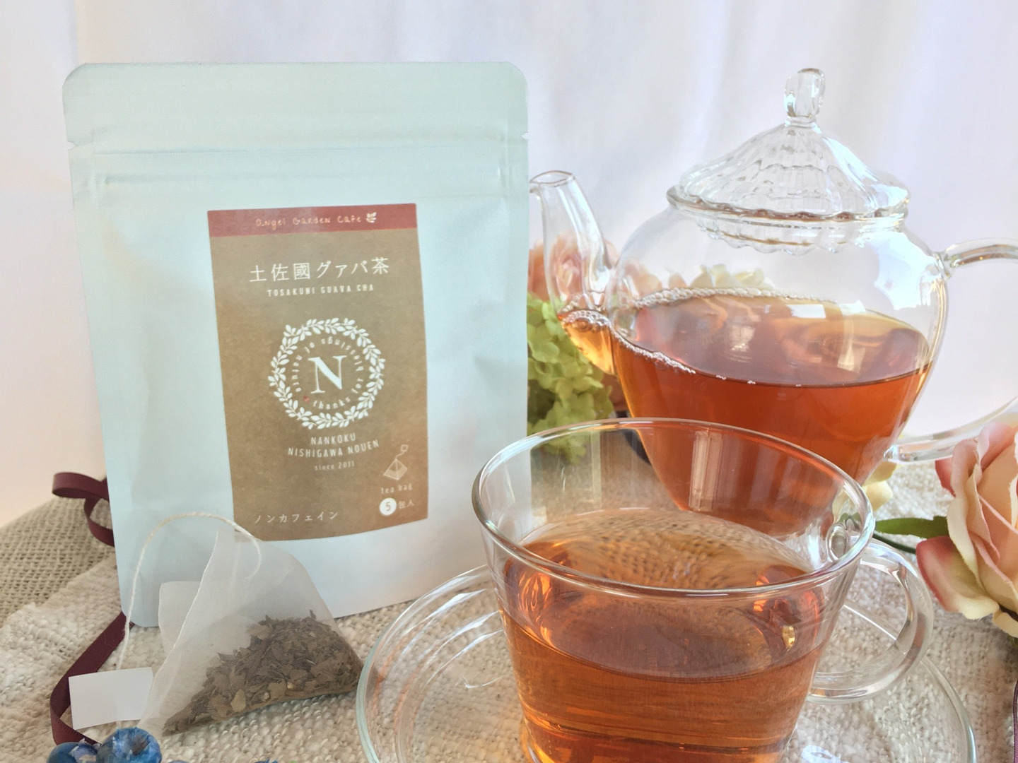 こちらのグァバ葉は農薬や化学肥料、除草剤を一切使用しない徹底した自然栽培。高知県南国市の有機JAS自家農園「南国にしがわ農園」産グァバ茶葉100%で、これ以外のものは一切添加していません。