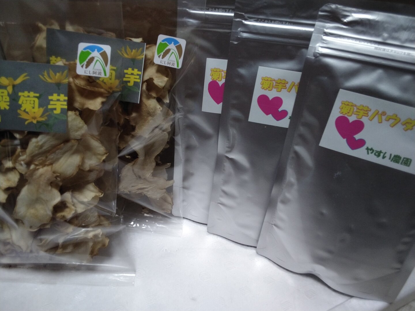 当農園で栽培した白菊芋を使って丁寧に手作りした乾燥菊芋とパウダーです。