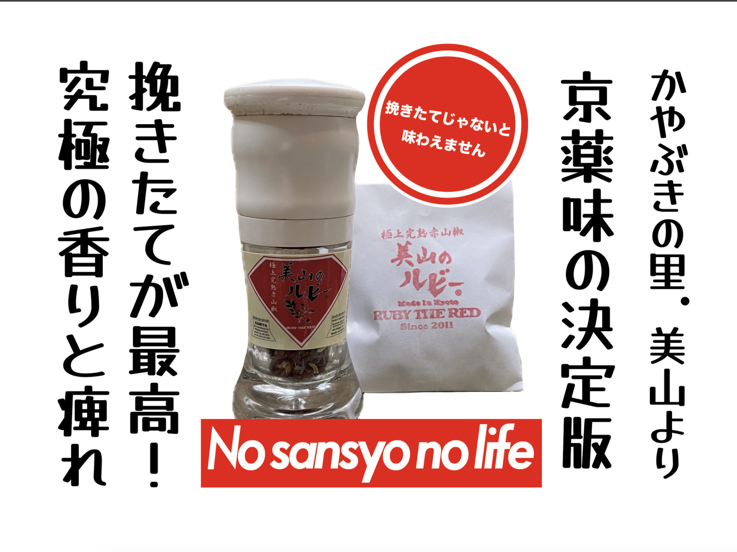 京都.美山産 極上の香りと痺れ !赤山椒 ◎"美山のルビー"ミル容器入と詰替用のセット
