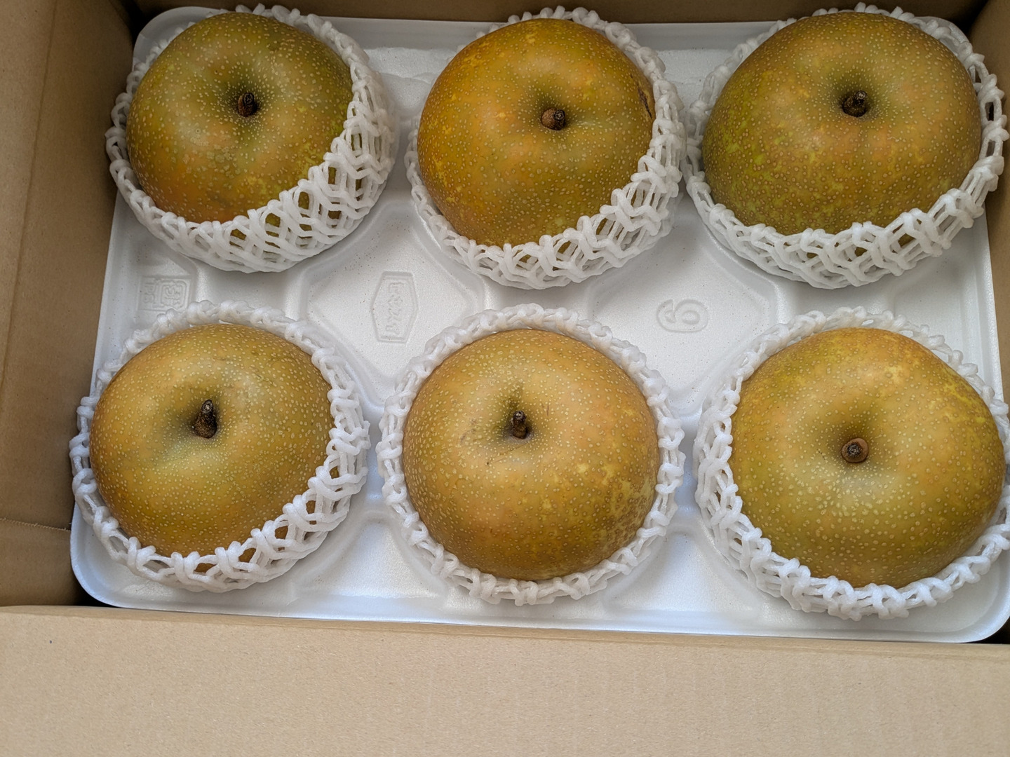 梨は収穫後も呼吸をしています。その為、木から離れてしまった梨は自分がもっている栄養や水分を使い呼吸を始めます。自分のパワーを使いきる前に食べてやって下さい。保存方法としては高温の場所は避けたいので必ず冷蔵庫にて保存して下さい。より理想的なのは水分の蒸発も避けたいので、新聞紙やジップロックなどに入れた状態で冷蔵庫保存がお勧めです。期限として長くて1周間程度です。日にちが経てばたつほど味の方は落ちて行きます。