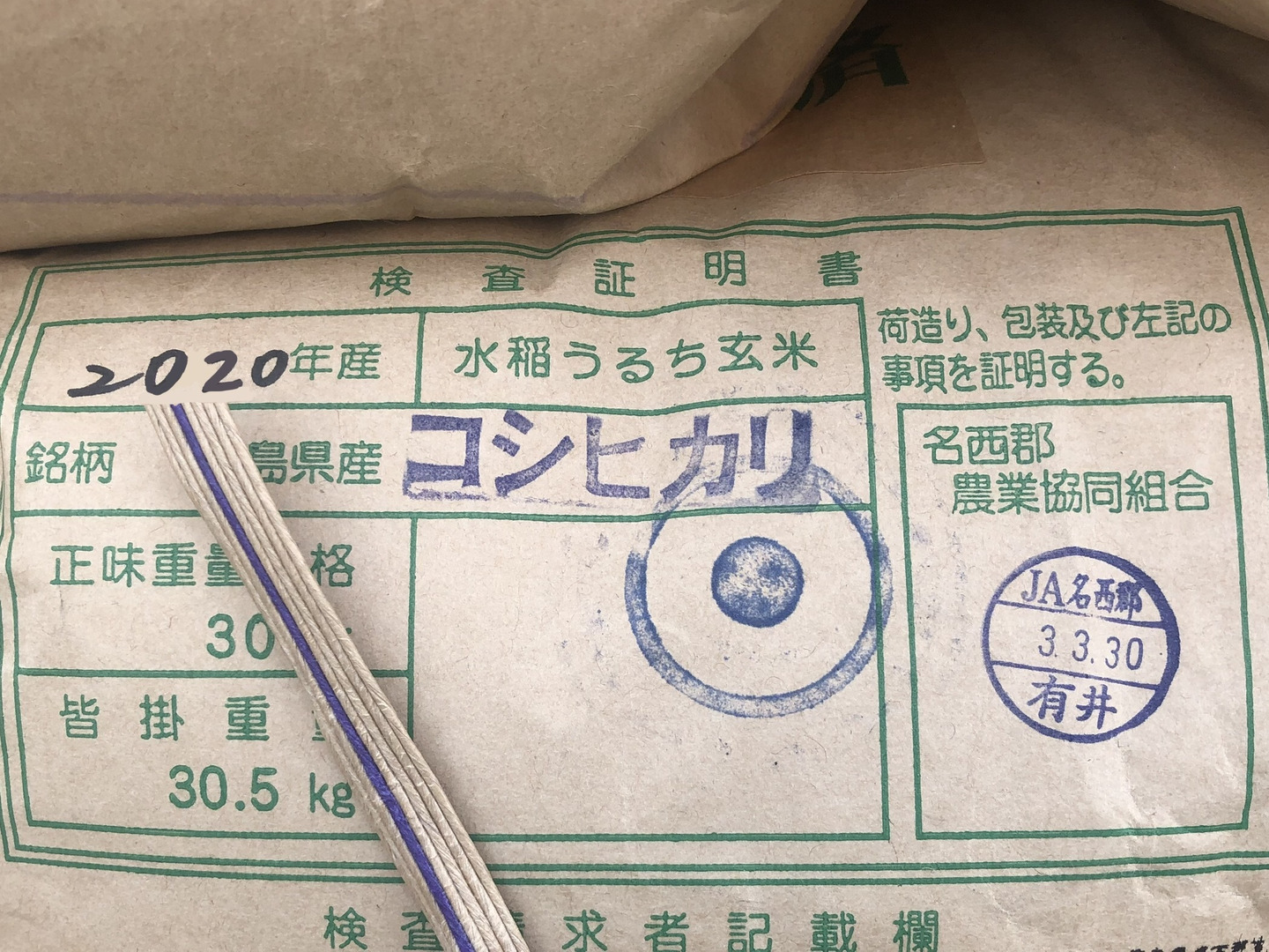 第22回 米・食味分析コンクールにて食味値85点の令和2年産コシヒカリ1等米、徳島県神山町産《雨乞米》です。