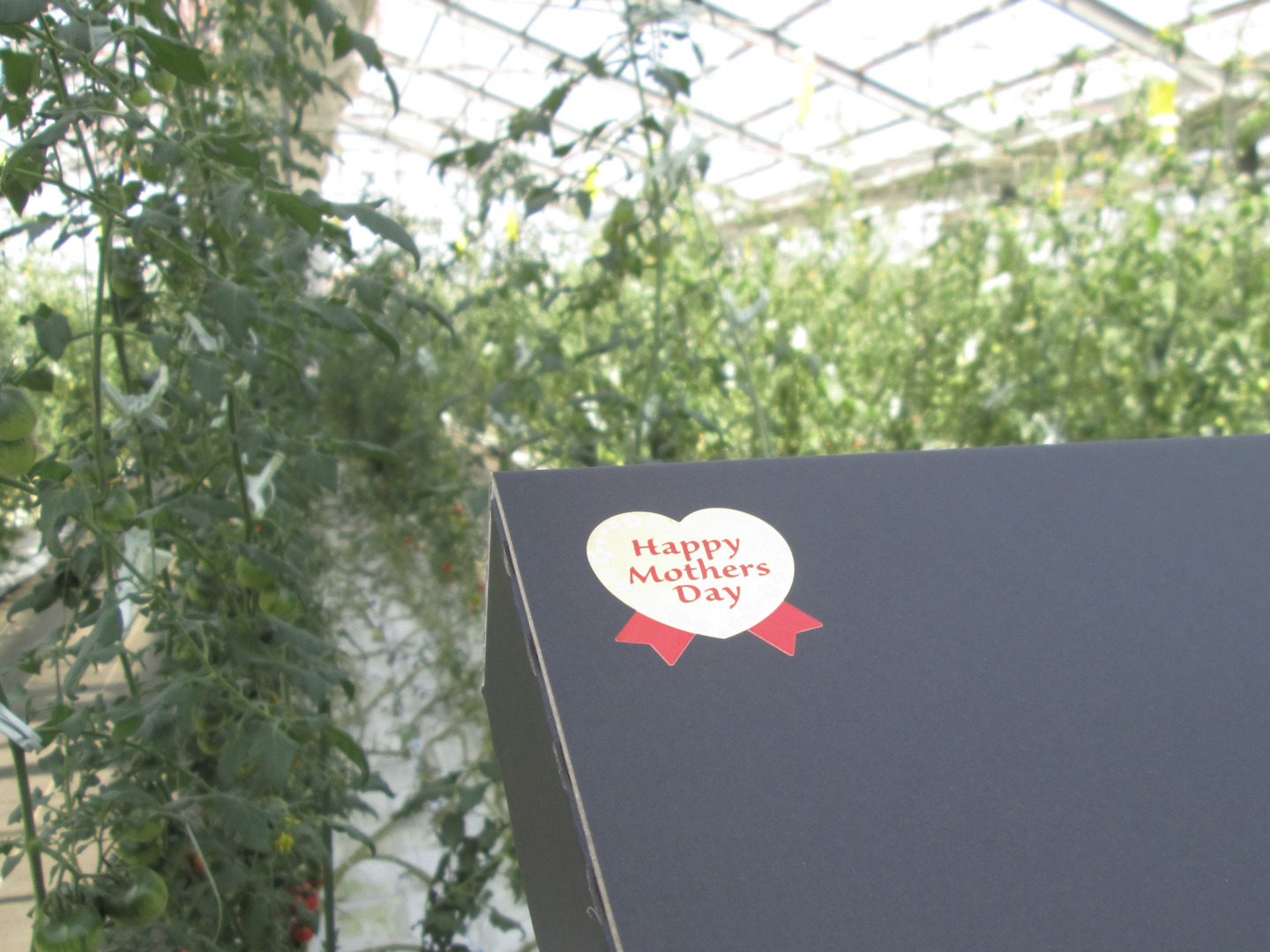 ☆★母の日ギフト限定仕様として、トマトを詰めた化粧箱にラッピングシールを貼り、