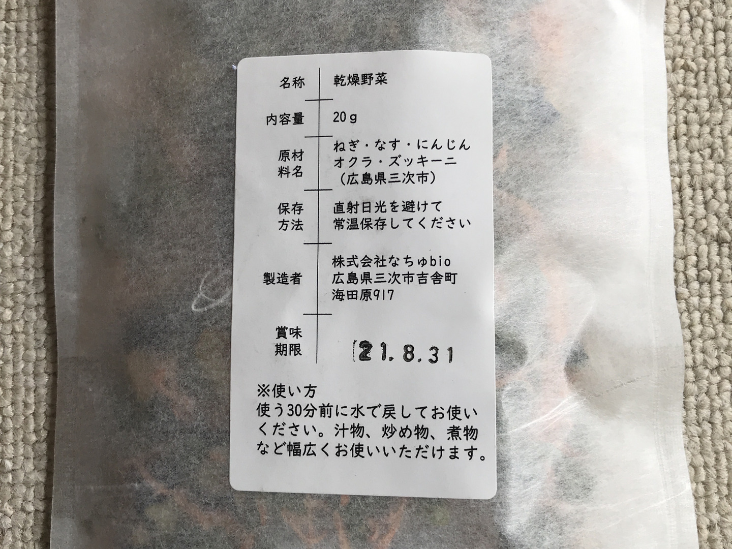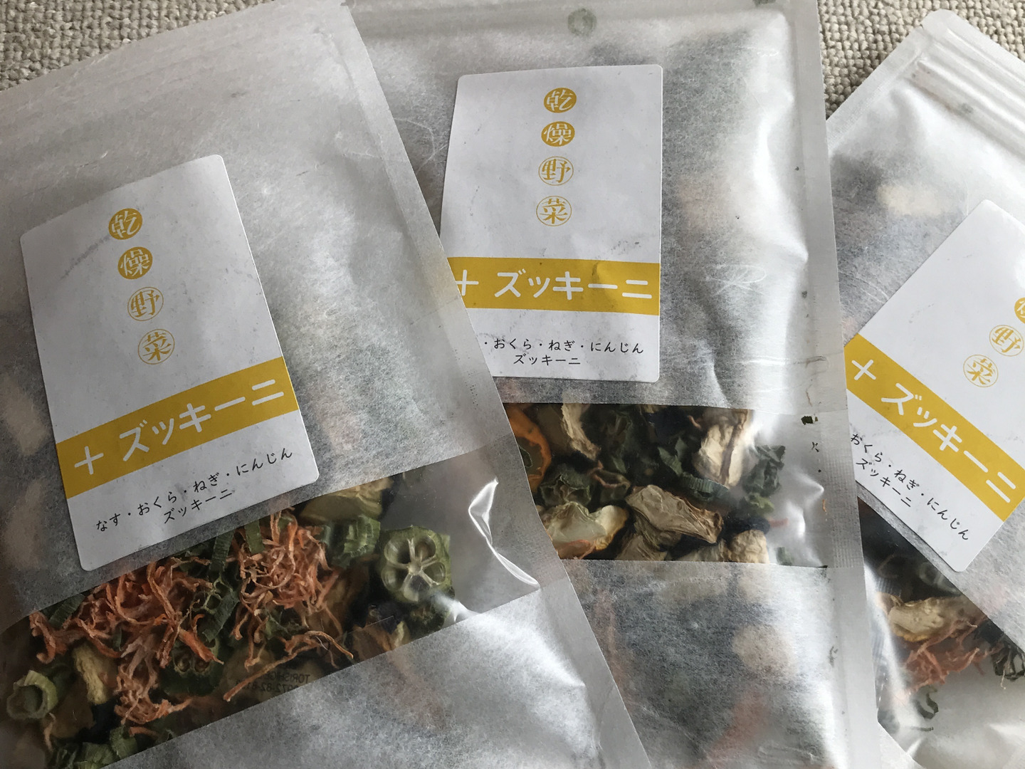 簡単でおいしい!乾燥野菜【+ズッキーニ】ねぎ、なす、にんじん、オクラ、ズッキーニ(20g×3袋)残1セットです