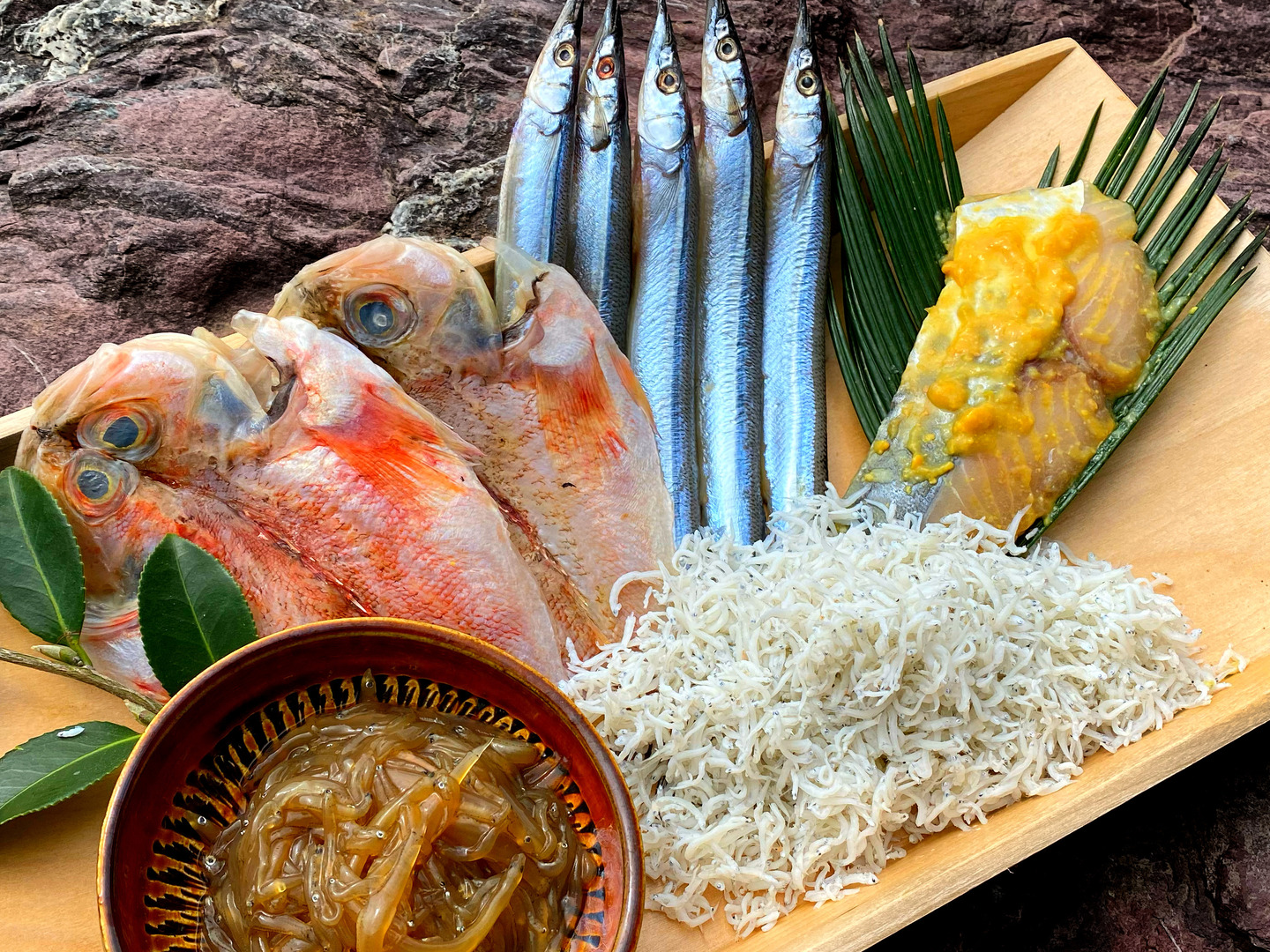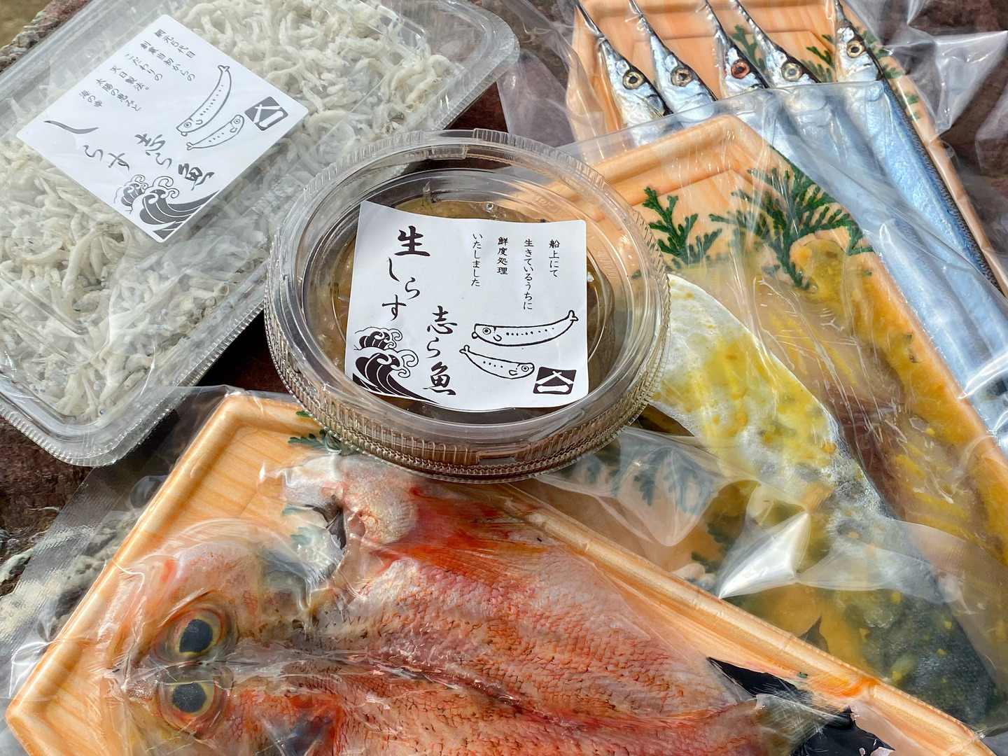 | 内容 | ホウボウの開き(国産)、サヨリの干物(国産)約180g、サワラ西京漬け(国産)約110g、生白魚の沖漬け(国産)約100g、釜揚げシラス(国産)約120g | ||||||