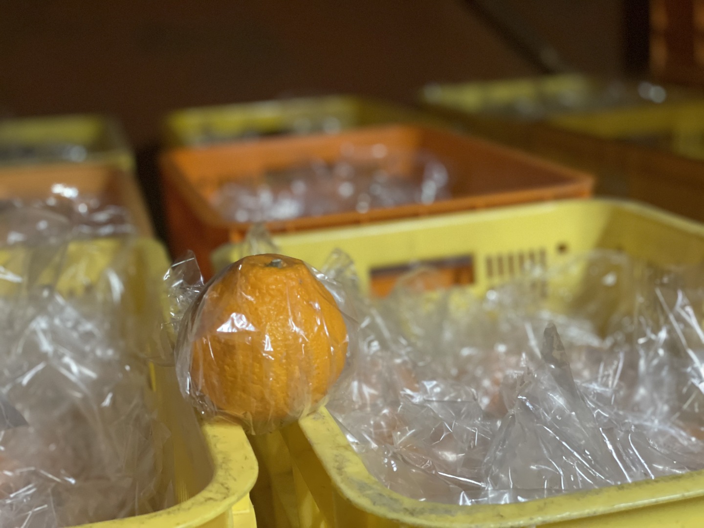 収穫後、倉庫にて追熟させ出荷されるのが一般的ですが、ひかりみかん園では、収穫後一つ一つを手作業で専用の袋に入れ専用の冷蔵庫の中で徹底した温度・湿度管理を行いながら追熟しております。その為、より濃厚な味わいをお楽しみ頂けます。