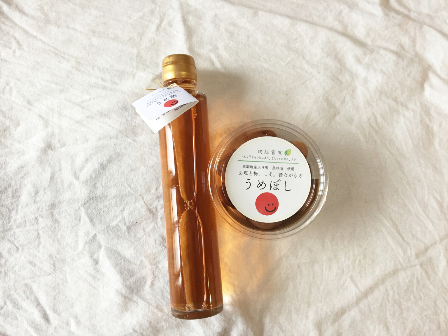 高知県黒潮町の天日塩 美味海(うまみ)で、梅としそを漬け、天日干しによる昔ながらの製法で作った梅干しと、ともに出来上がる梅酢のセットです。