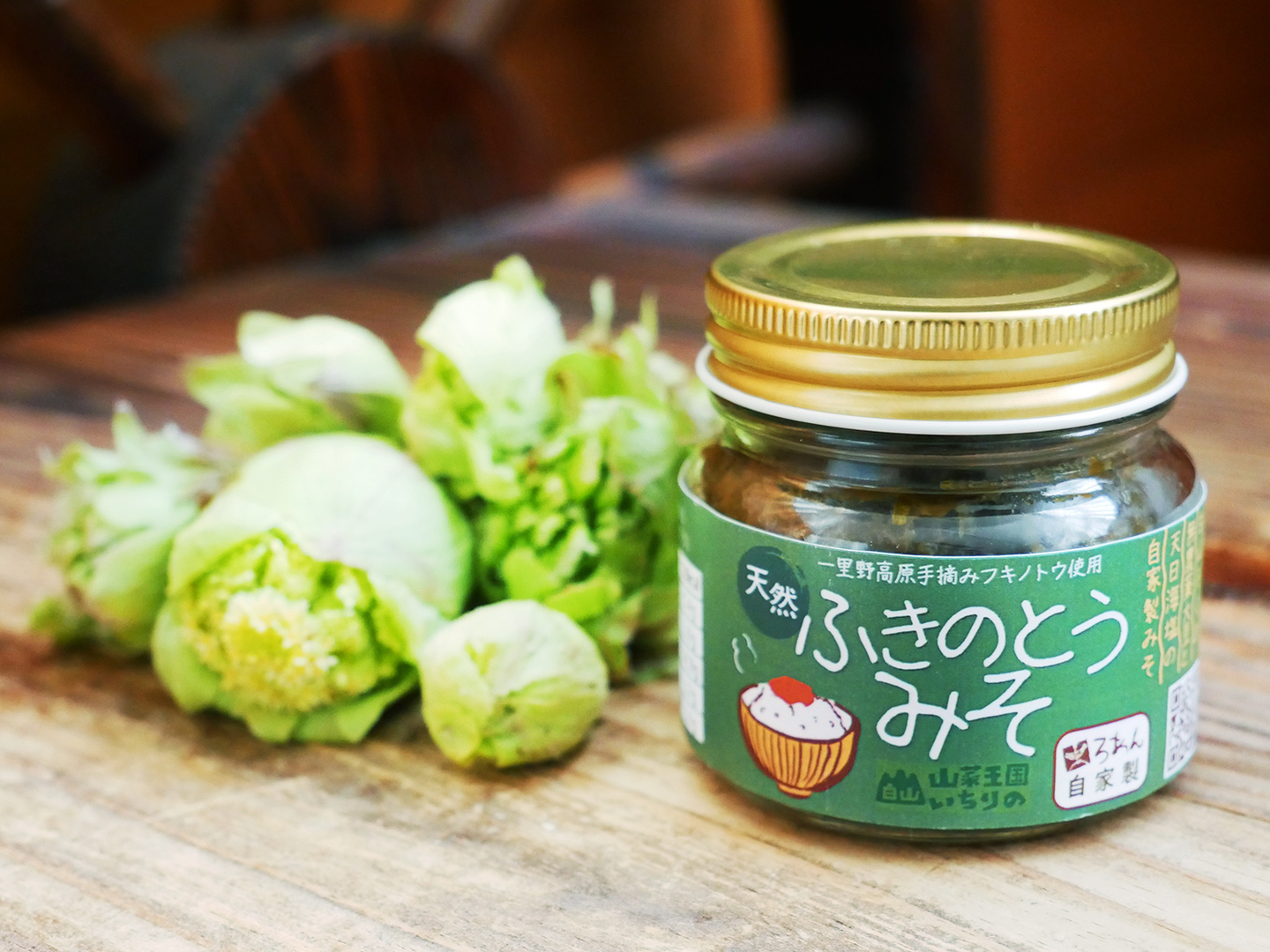天然フキノトウと、そのフキノトウを使用したフキ味噌のセット商品です。