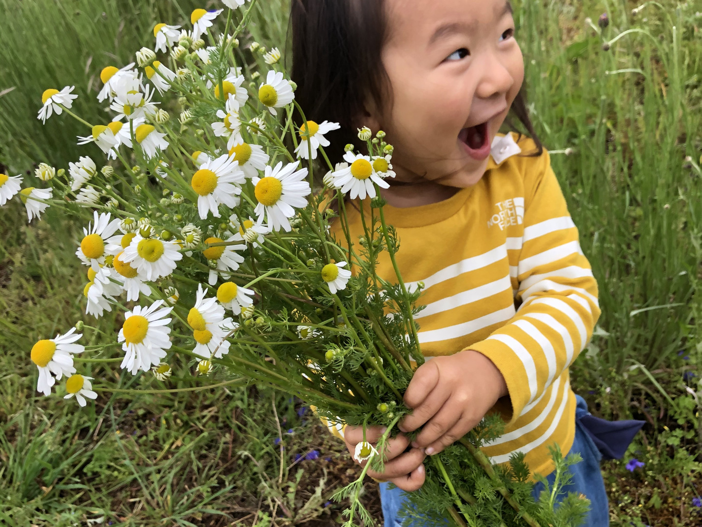カモミールが開花の時期を迎えています(^^)オーガニックカモミールの花束を数量限定の販売をいたします!