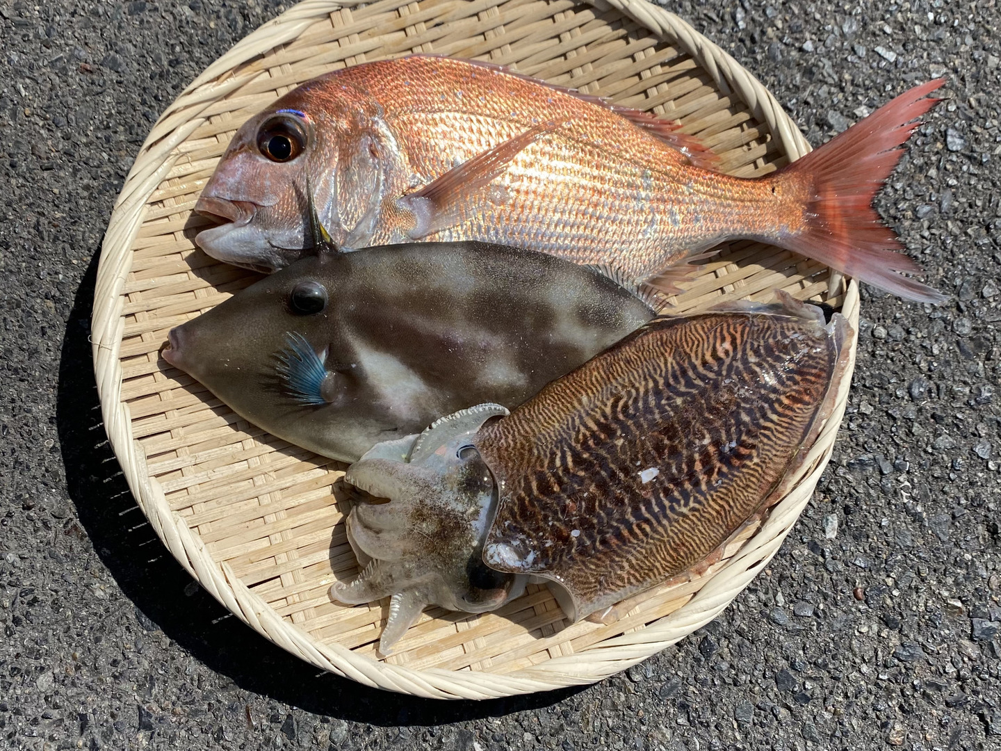 - 宮島沖でとれた天然の真鯛、ウマヅラハギ、コウイカのセット