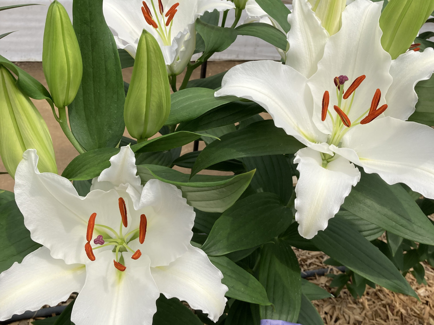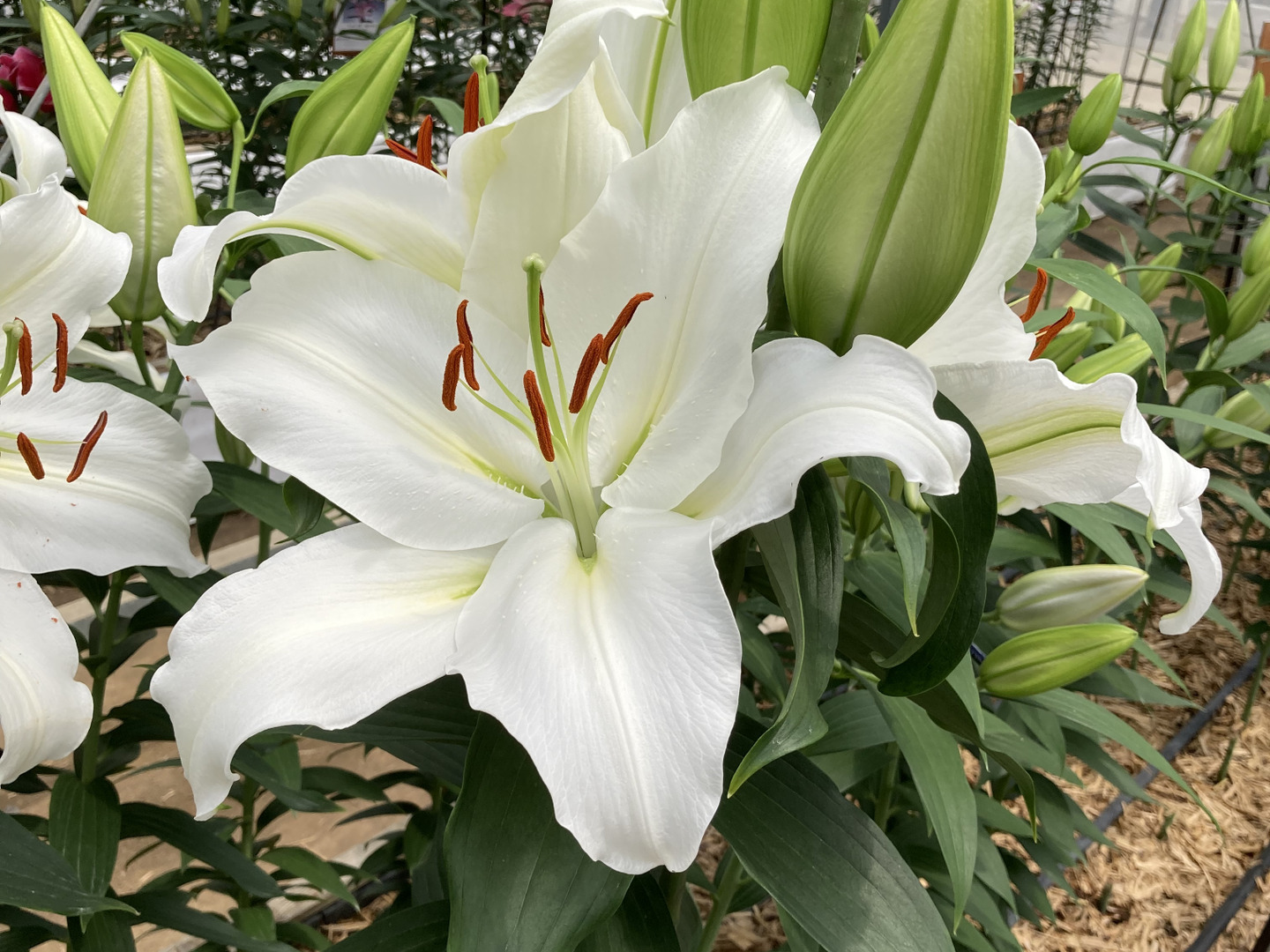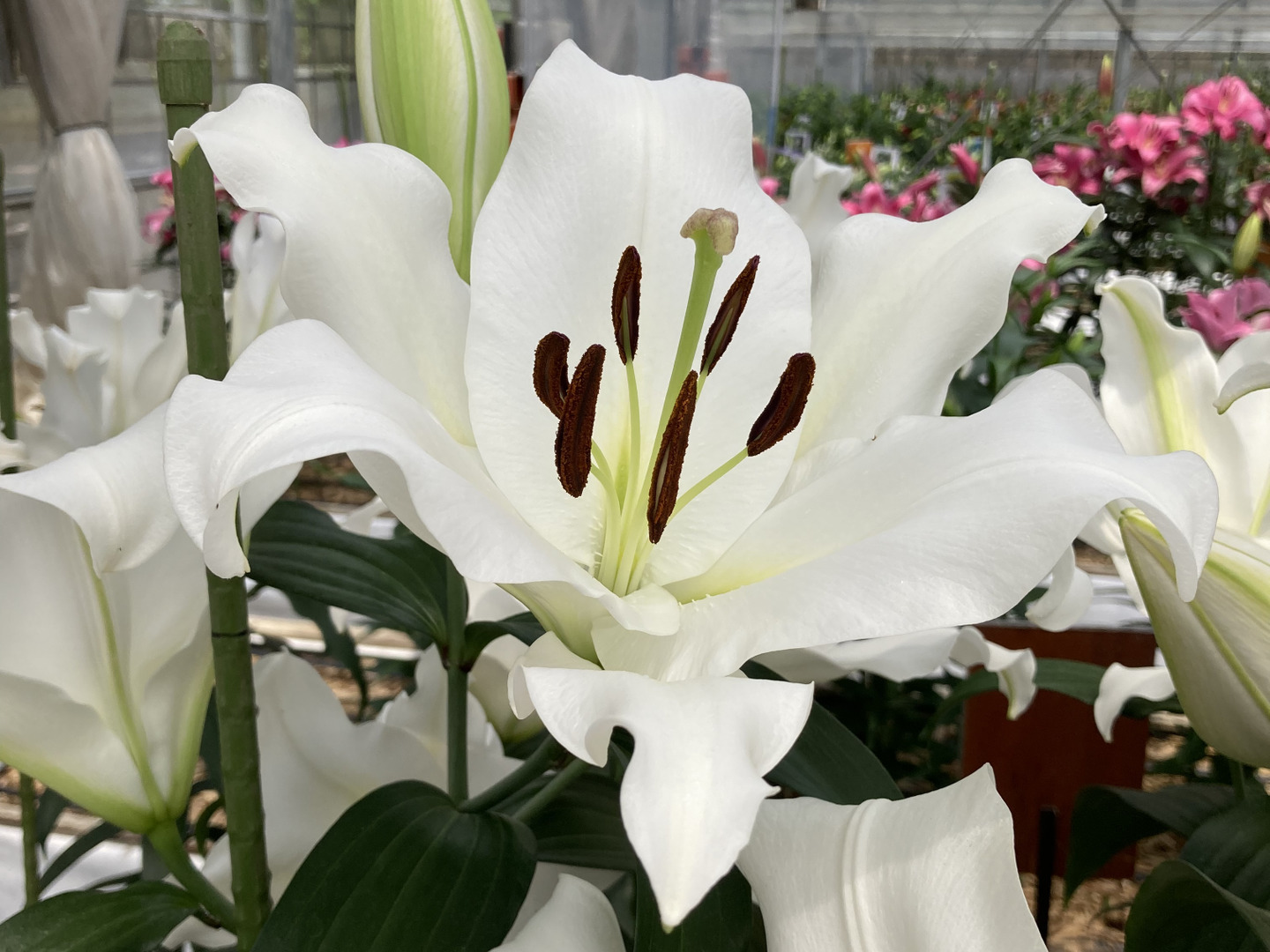 品種によりますが、夏場は花のツボミが小さくなります。高温のため植物の成長が早く、つぼみが大きくなる前に花が咲こうとしてしまうからです。冬場に比べると花が小さくなってしまう品種に関しては、本数を増やして対応しています。特に、シンプルな白の品種が該当します。夏場でも、白い大きな花の品種が収穫されている時期は、箱ギリギリの梱包になりますので本数はそのままです。