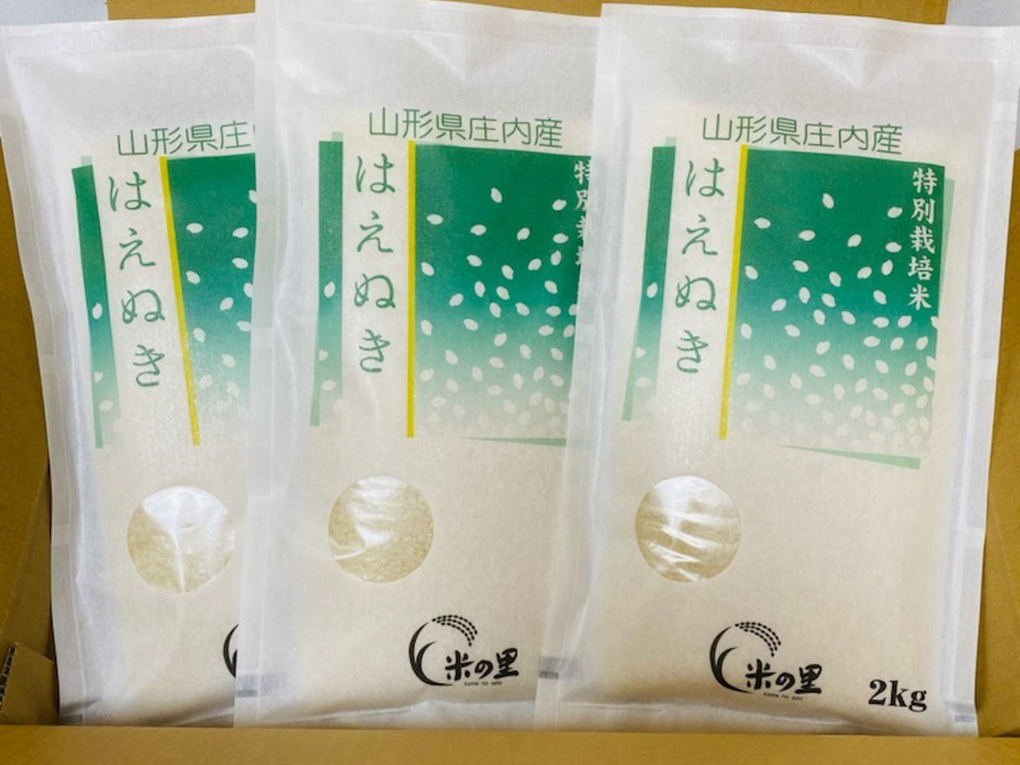 山形県産特別栽培米はえぬき(白米)2kg×3袋