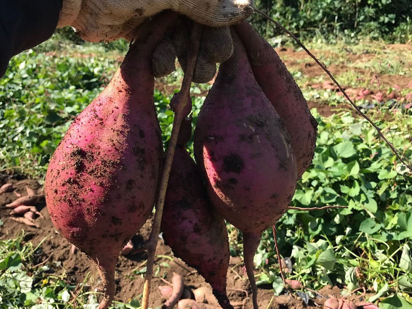 - 3 焼酎みしま村と焼酎メンドンの原料芋として、ベニオトメの栽培に取り組んでいます。