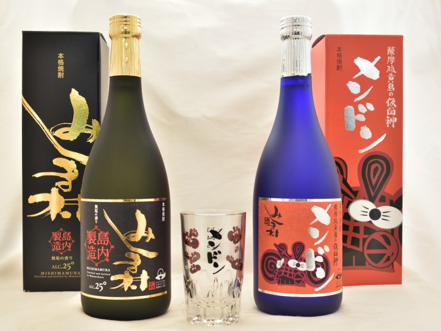 焼酎みしま村/焼酎メンドン セット(各1本) +みしま村またはメンドンお湯割りグラス1個プレゼント【飲み比べ】【ギフト】「熨斗対応可」