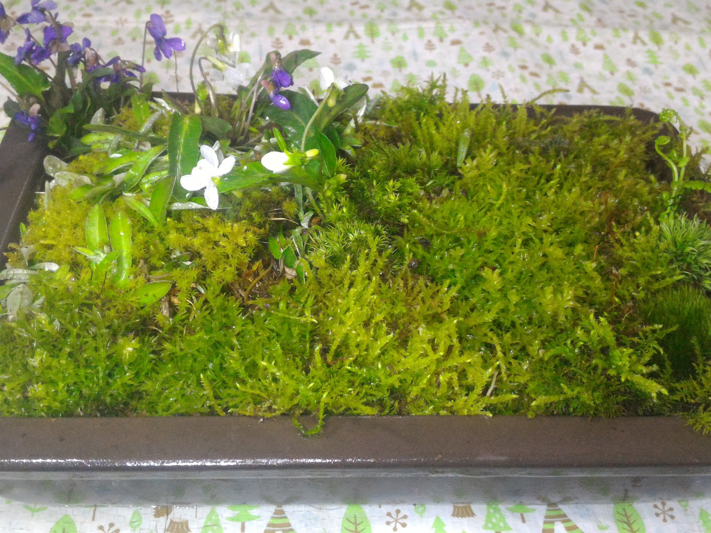 ピンセットや箸で苔の向きや配置を整えたり、指先で軽く苔をなでてあげて見た目を整えます。