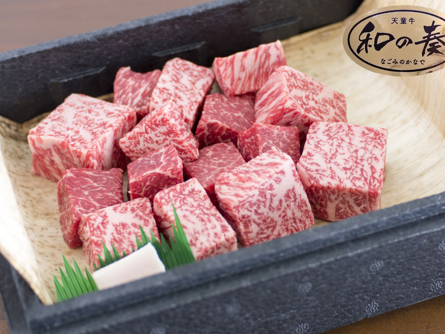 サイズアップ山形県産のお米で育った黒毛和牛『和の奏』角切りステーキ6人前