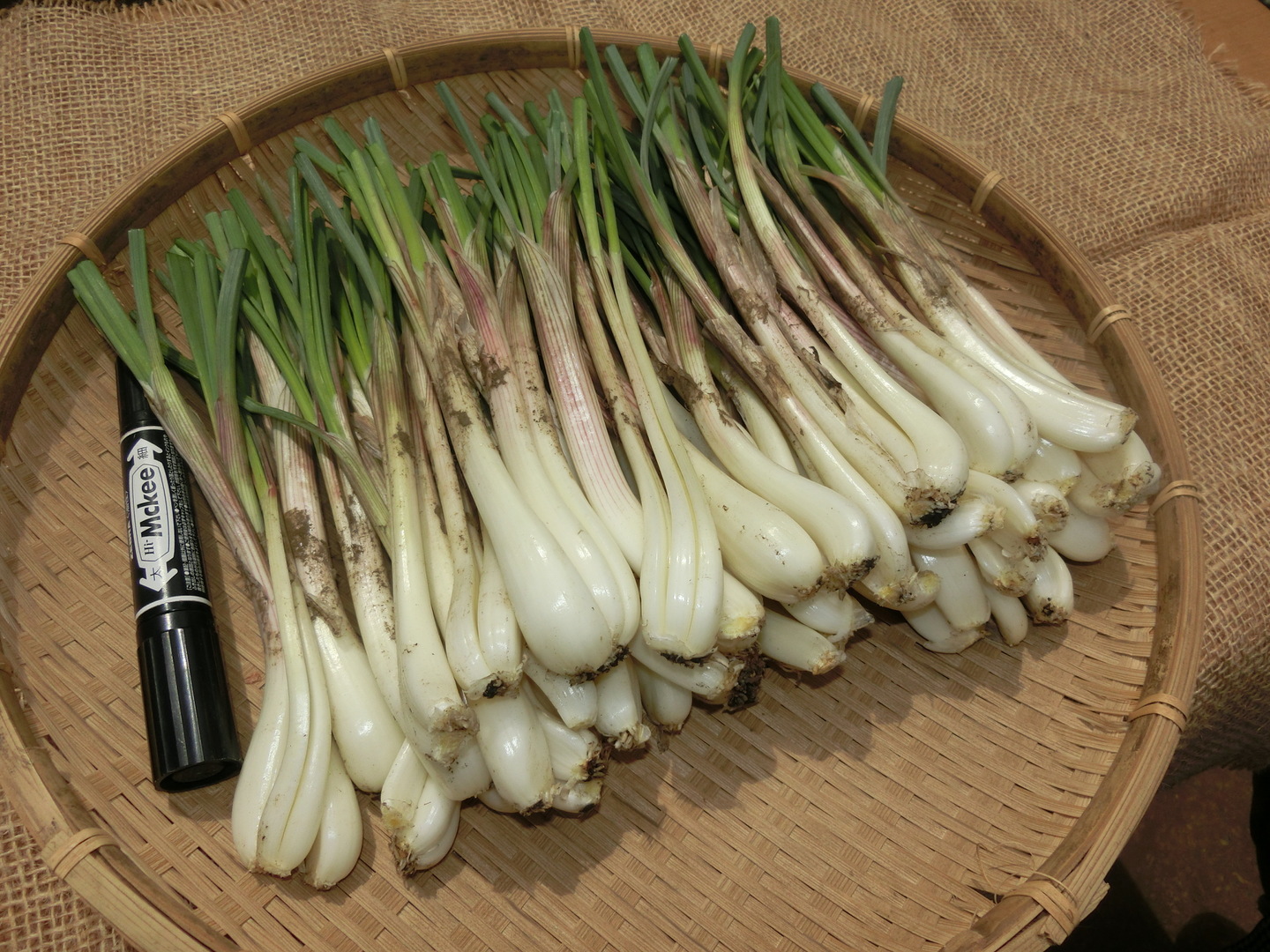 余分な葉っぱと根っこを切り、機械で皮飛ばし済みです。