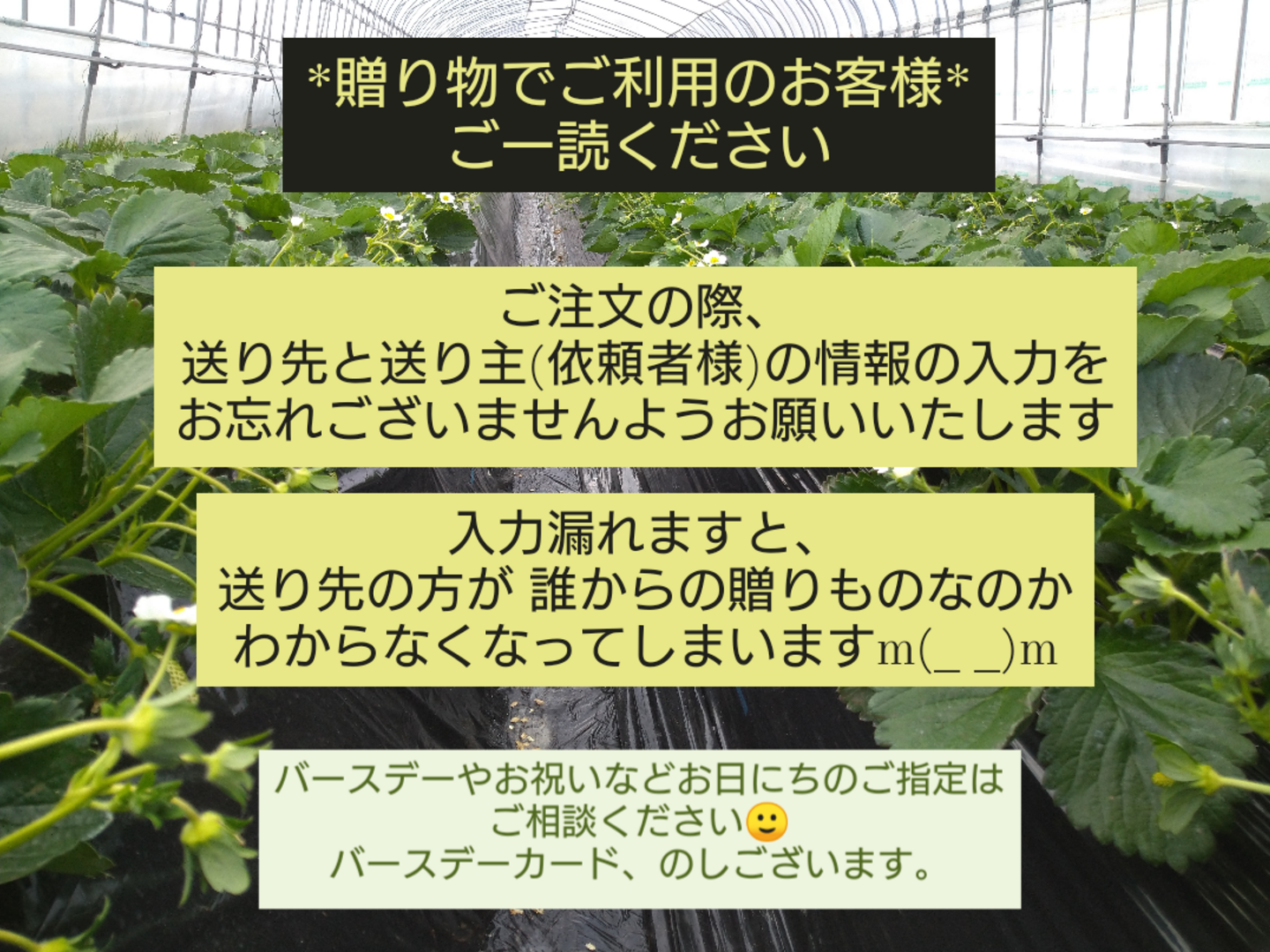いちごの収量は天候等に左右されますため、配送日時のご指定はできかねますことご了承ください。