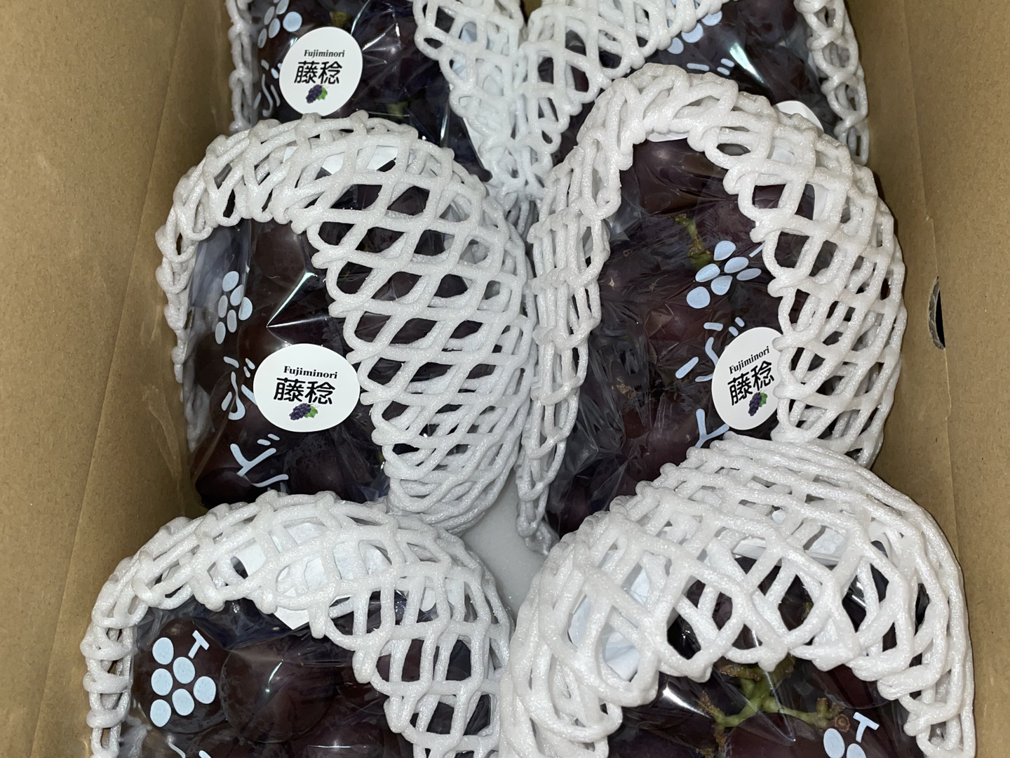 ※藤稔は皮が薄く水分量が多いため衝撃に大変弱く、実が裂けやすいです。