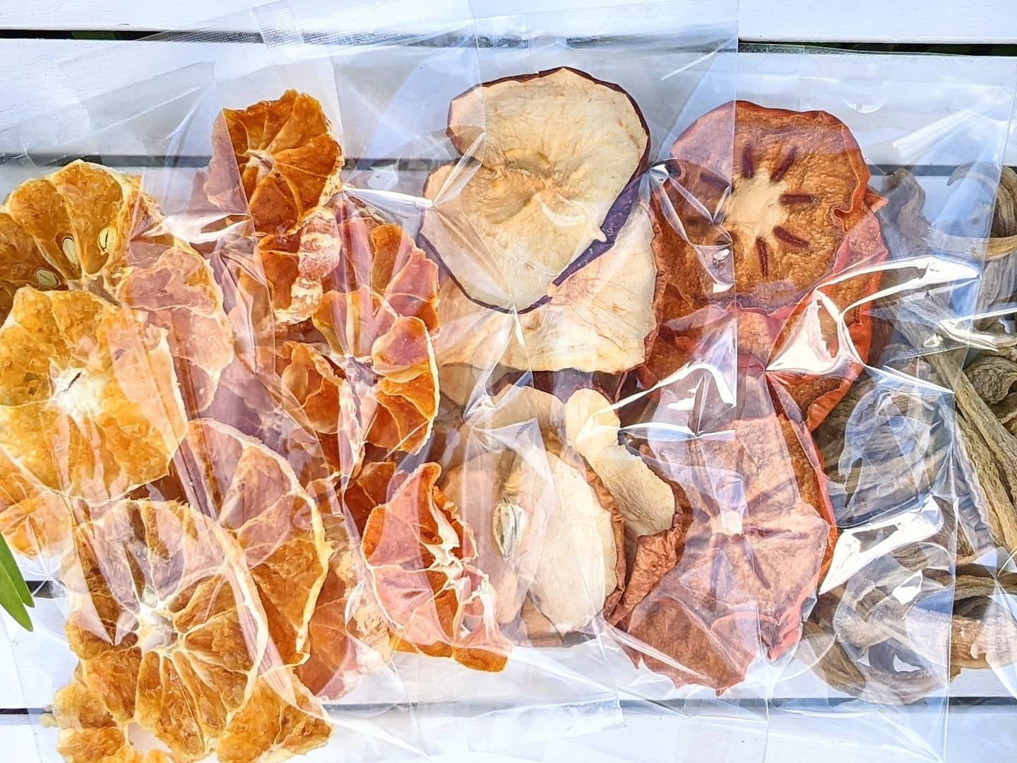 通常は廃棄してしまう食材の部分を乾燥させて本来の甘みを引き出した、ドライフルーツに仕上げて商品化しています。