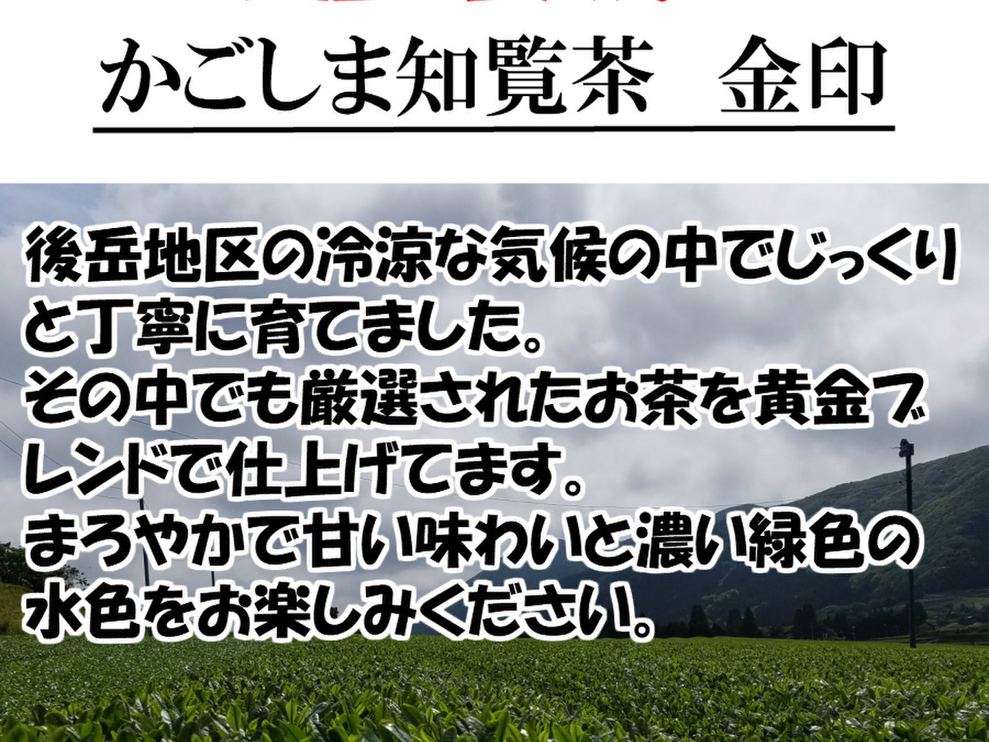 • 上級茶の名産地 知覧の後岳産!一番人気の金印!