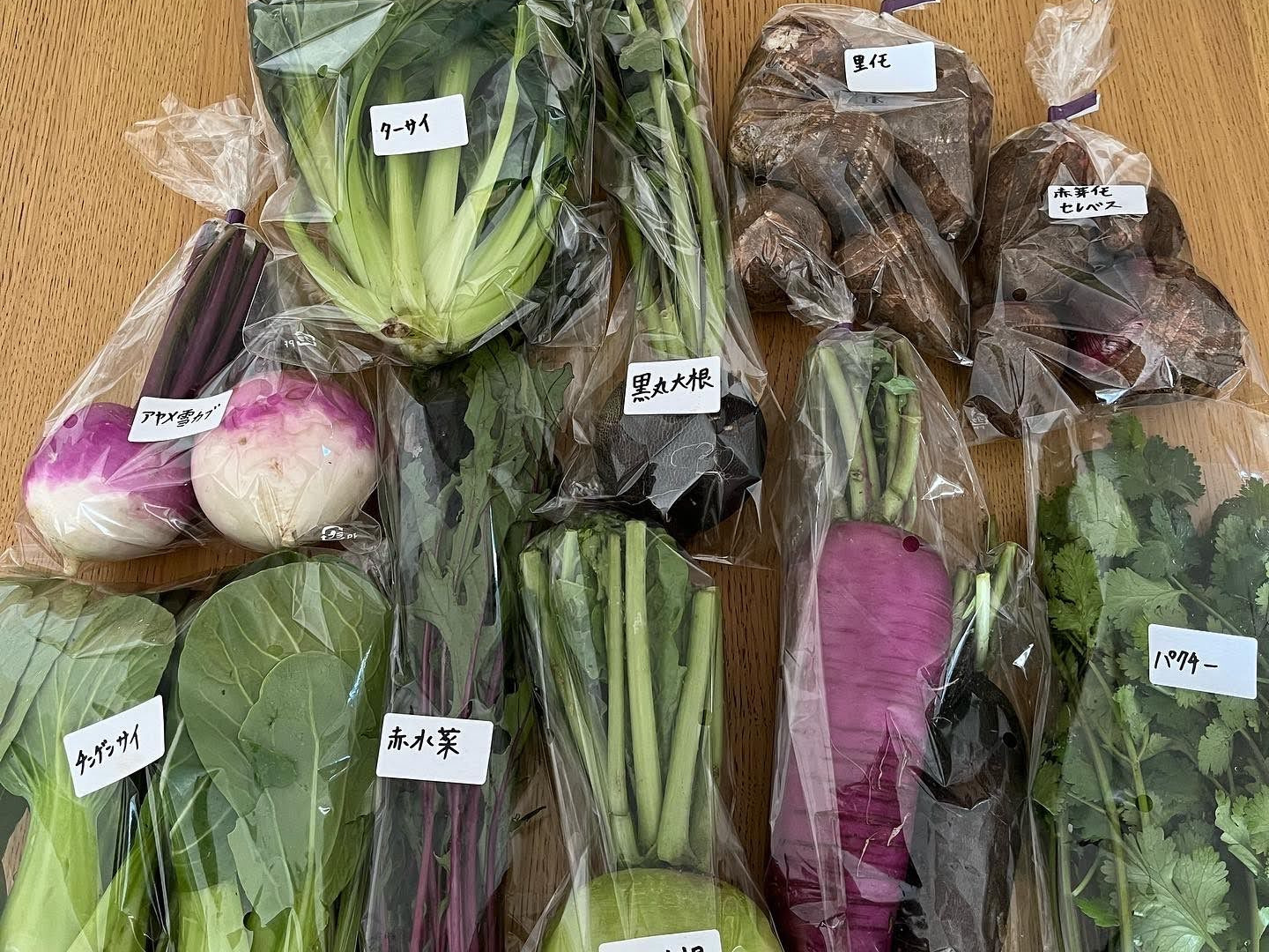 以下の野菜の中から7-11種類、箱に入るだけお詰めしてお送りします。