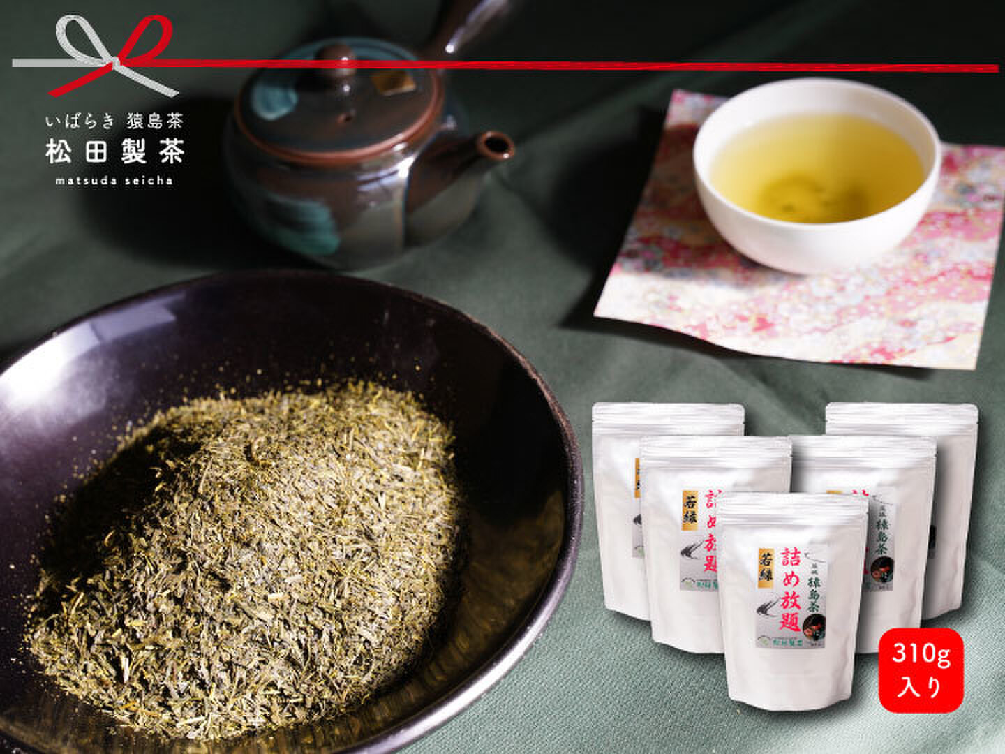 【10%引き】詰め放題 1000円 若緑/310g(5袋)たっぷり310g入り 合計1550g お茶 緑茶 猿島茶 大容量 イベントで人気 LEF-013
