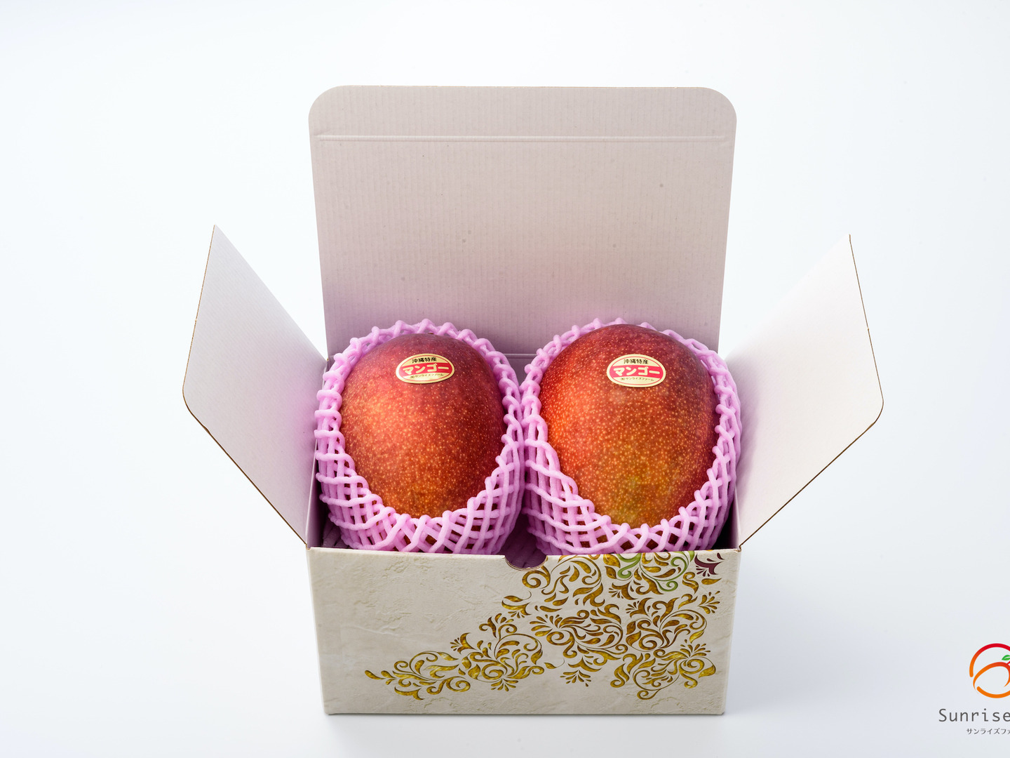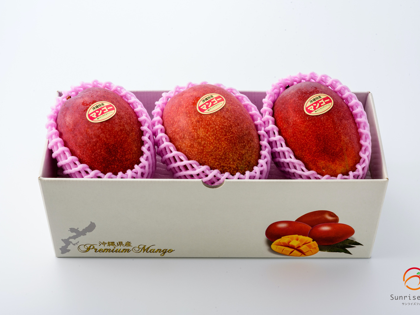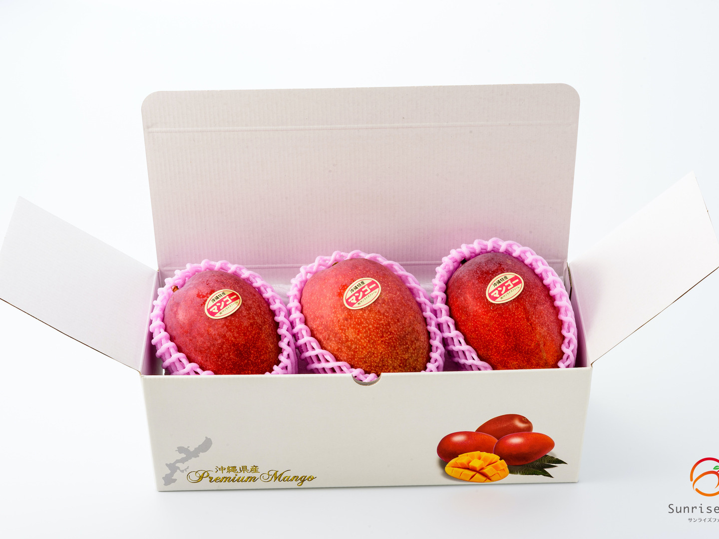 沖縄県本島東海岸に位置する宜野座村の豊かな自然と太陽の下で育ったサンライズファームのマンゴーは、しっかりとした甘さと、なめらかな食感、濃厚な風味が特徴です。