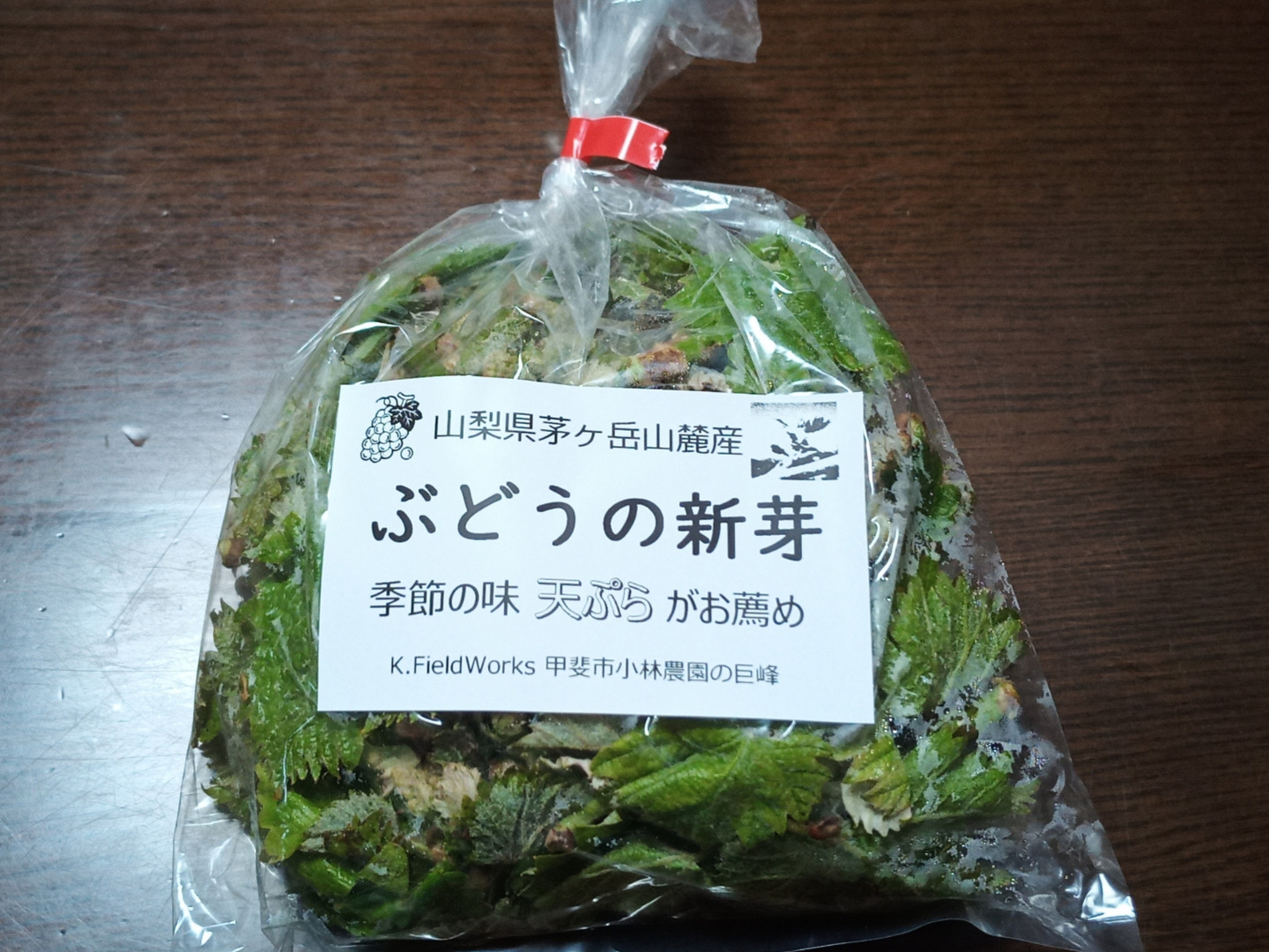 葡萄の産地山梨ではこの間引いた芽を”春の味””旬の味””季節の味”として天ぷらにして食べます。