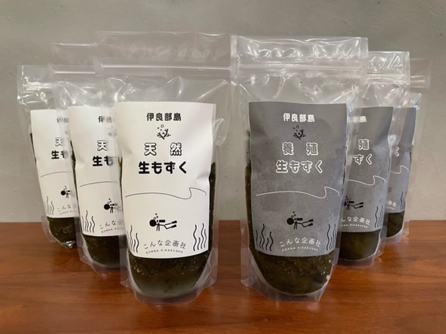 養殖もずくとあまり市場にでない天然もずく、それぞれに太さ、食感、喉ごし等に特徴があります。是非この機会に食べ比べを体験してみてください。